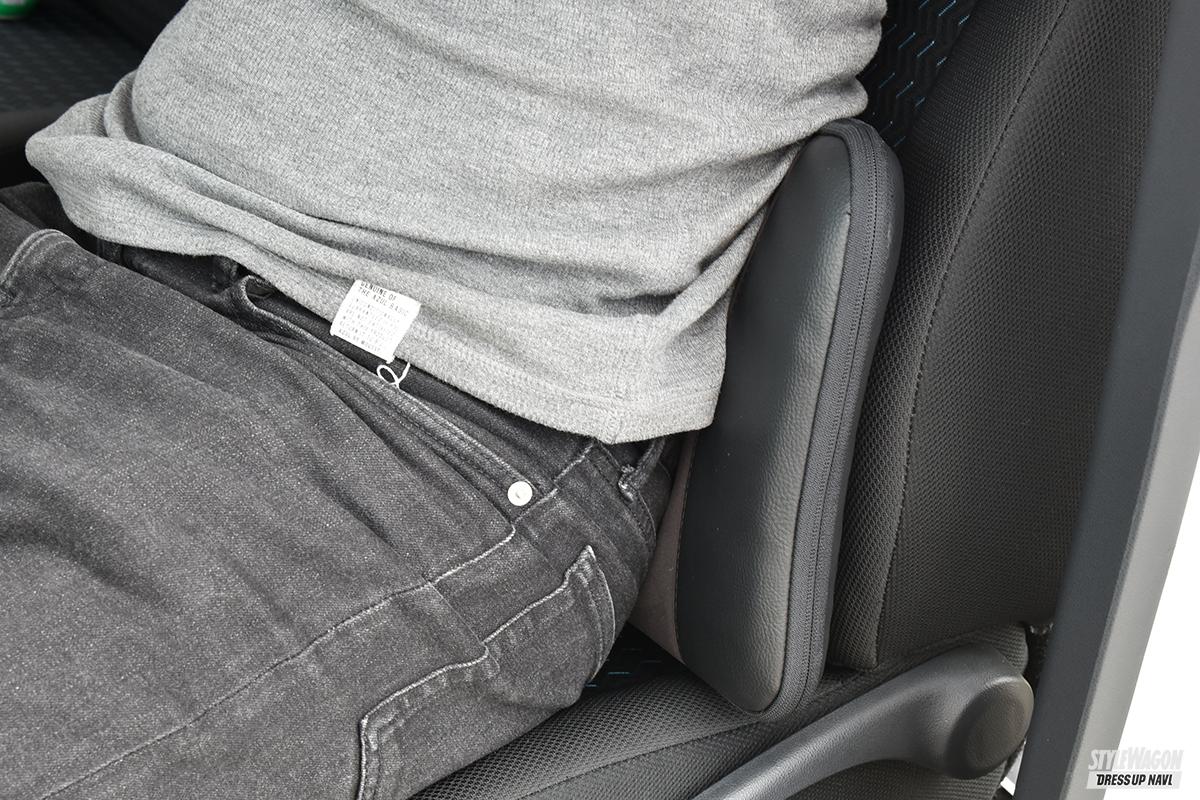 多彩なパーツを展開するシルクブレイズが現在開発を進めるクッション&トートは、その名の通りクッションとトートバッグが一体化した、今まであるようでなかったアイテム。いつもは腰をサポートするクッションとして、いざという時にはトートバッグとして、マルチに使える逸品。実用性の高さはもちろんだが、センターにスエード調の素材を採用し、さりげなくブランドロゴを配置するなど、デザイン性にもこだわる。アルヴェルなどの上級ミニバンの室内にも違和感なくマッチする仕上がりも魅力のひとつだ。
