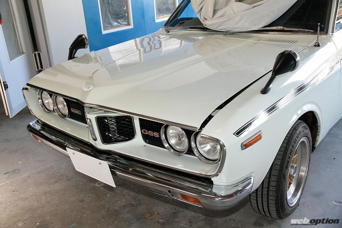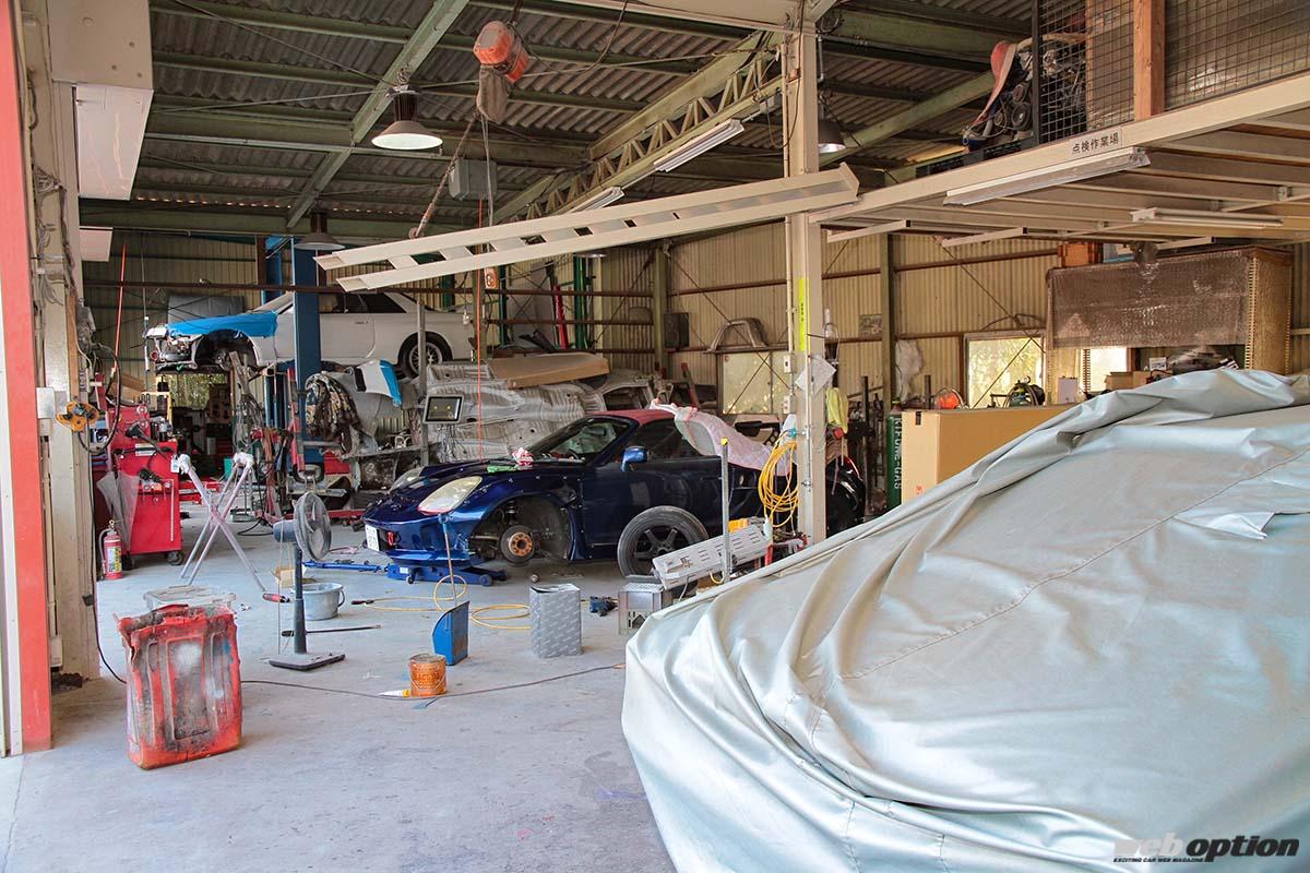 この10ソアラは29年間納屋に格納されていた車両で、公道復帰を目指してリフレッシュを図っている真っ最中。この他、RX22型マークII GSSやワイドボディ化作業中のMR-Sなど、ピットの内部は多彩な車種が揃っていた。