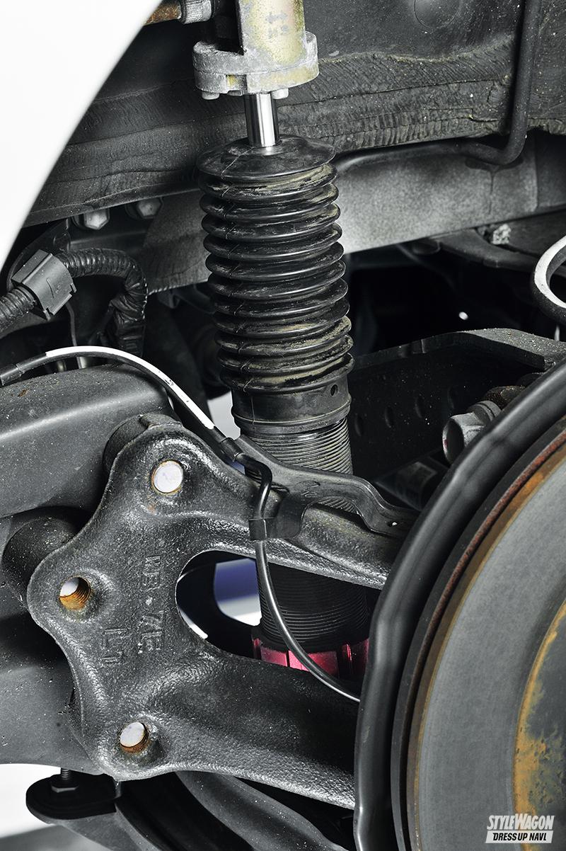 専用レンチを使い、ミリ単位でクルマの車高を調整できる