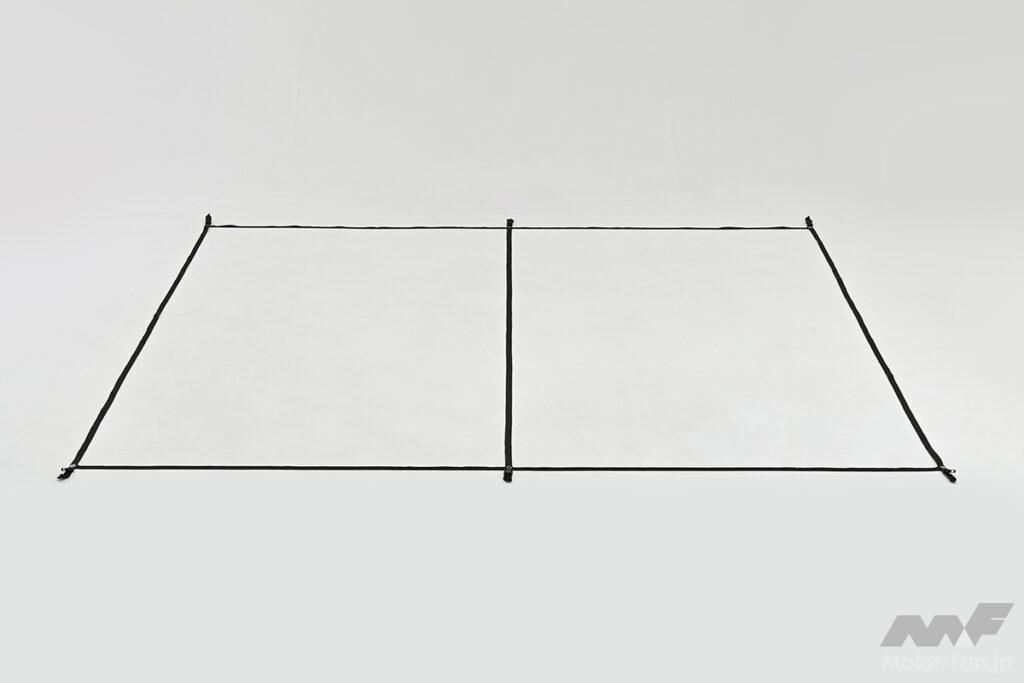 写真は新発売の別売オプション品 「MAEHIRO DOME(マエヒロドーム)用ガイドベルト(自立テープ)」。フライシートのみで設営可能になるお役立ちアイテムだ。