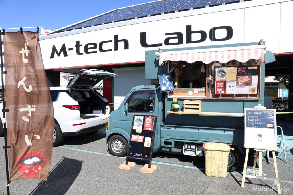 会場内には地元名古屋で活躍する軽食やパン、デザートのキッチンカーが集結。営業中は隣に停められたアウトランダーPHEVにコンセントを接続して、照明や調理器具などの電源を確保していた。愛知らしいフードメニューもあり、台湾まぜごはんや台湾まぜそば、ぜんざい、バスクチーズケーキ、カレー、豚汁、カレーパン、天むすなど、ご当地めしを中心に、体の芯から温まるメニューなど盛りだくさんだった。