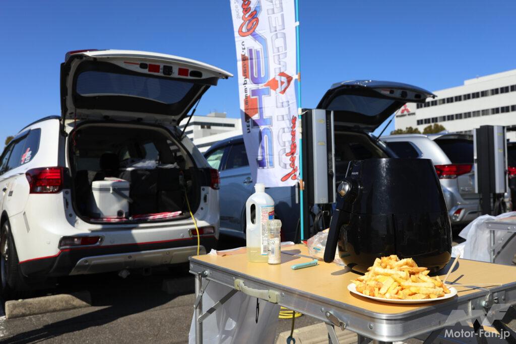 会場には地元名古屋グルメのフードトラックやこたつコーナーが用意され、その電力をPHEVから供給するという”PHEV”ミーティングならではの試みに加え、三菱自動車の開発者が語る開発秘話、タレント・テリー伊藤さんのトークショーなどが催された。