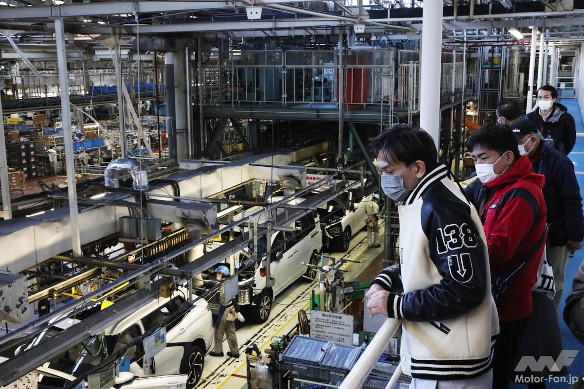 当日は岡崎製作所内を見学できるツアーにも参加できた。現在は一般向けの工場見学は休止中なので貴重な体験だ。見学ツアーは約1時間。外板パネルをプレスする工程から溶接を経て、エンジンやモーター、足回りの取り付け、内装の取り付けから最後に完成した車両のテストまで、ロールされた1枚の鉄板からクルマが完成するまでの一通りの作業を見ることができた。自分が乗っているクルマが多くの人の手やロボットによって作られていたのを実感したはず。