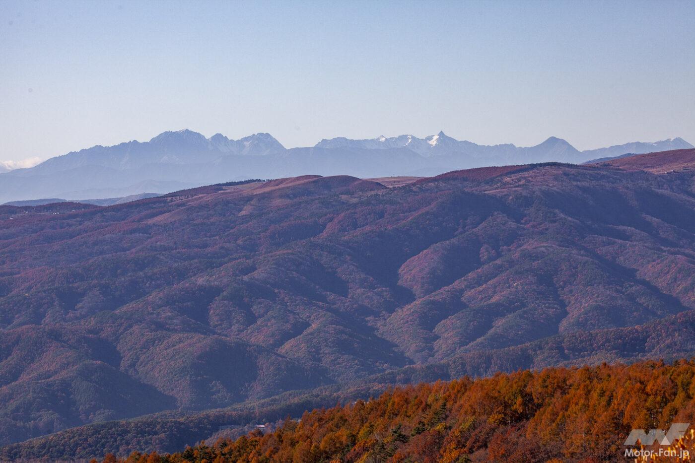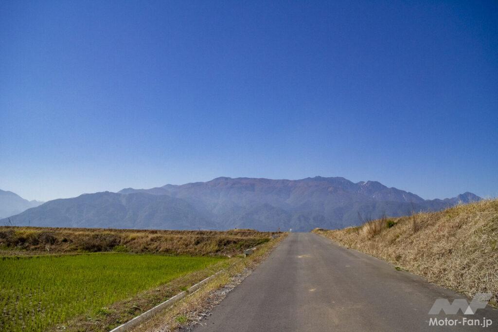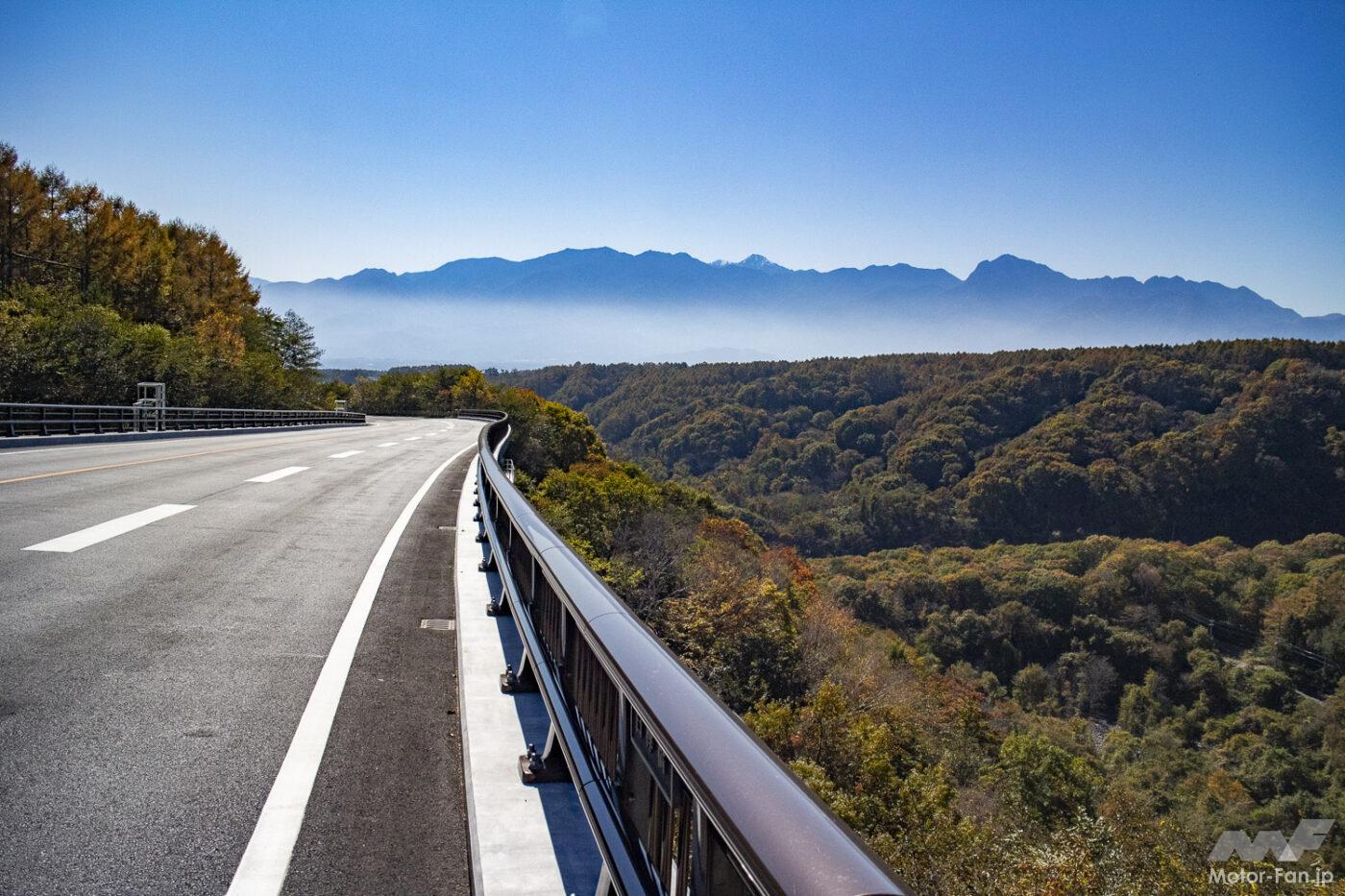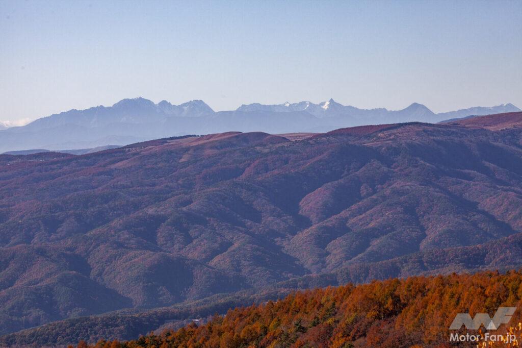 今回、取材データの座標点と住所で示すポイントは、中央自動車道路の長坂インターチェンジから清里方面へ約9km(車で約15分)の地点にある「八ヶ岳高原大橋」を渡った先の左手にある「北杜展望駐車場」です。八ヶ岳高原ラインと比較すると、舗装は新しく屈曲も穏やかで路面が綺麗。そして周辺の景色が開けていて、天気の良い日に目に飛び込んでくる八ヶ岳など、パノラマの様に広がる山並みの眺めが最高です。座標点の駐車場はトイレ等の施設はありませんが、周辺にはさほど遠くない位置に様々な施設があるので、休憩や食事場所に困ることはないでしょう。