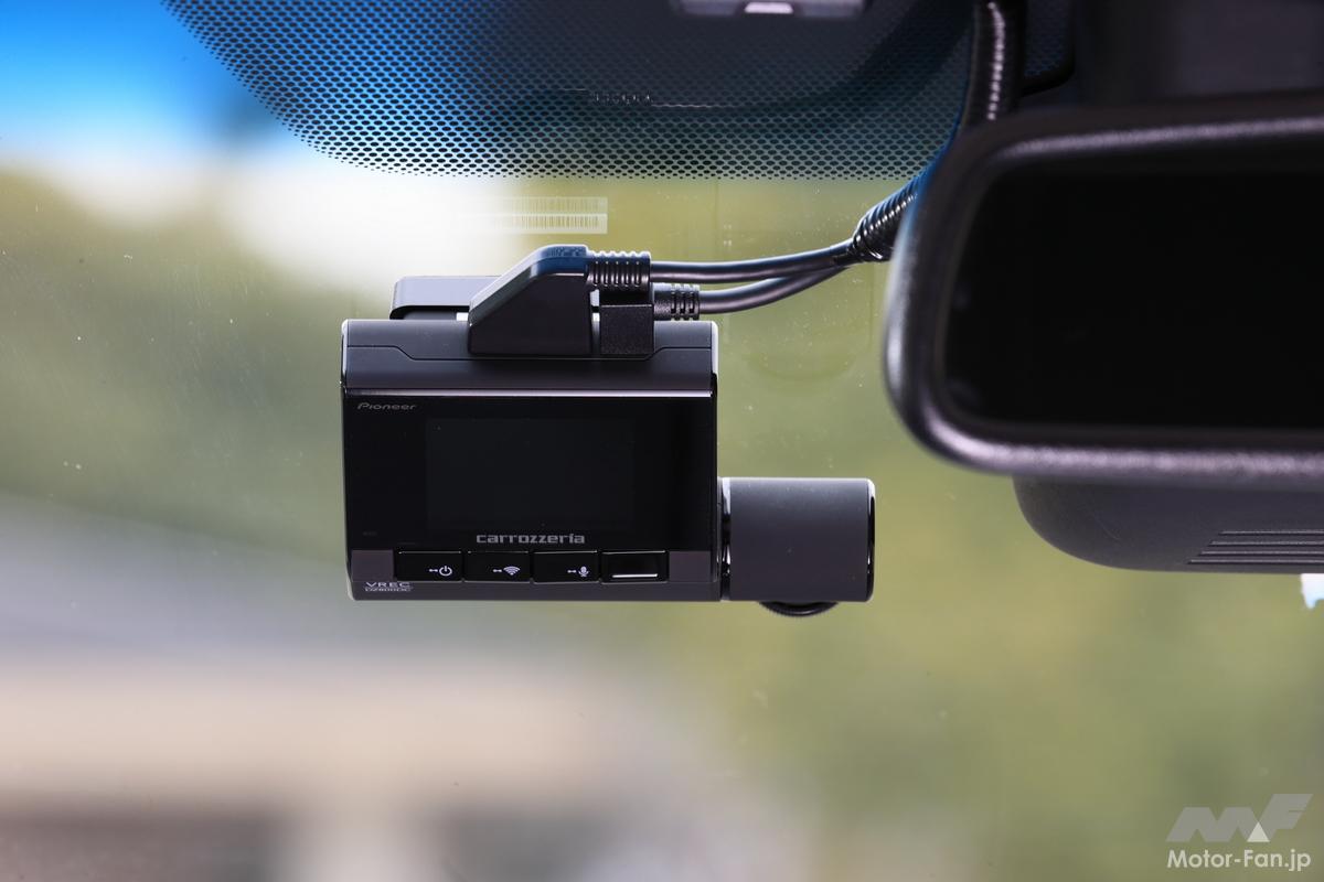 ドラレコとしての基本性能を整理しておくと、上級モデルらしく前後カメラともフルHDでクリアな映像を記録できる。筐体もコンパクトで、装着することで邪魔に感じることはない。目立たない配線ができるように工夫されたデザインもうれしい。