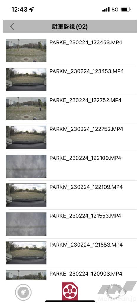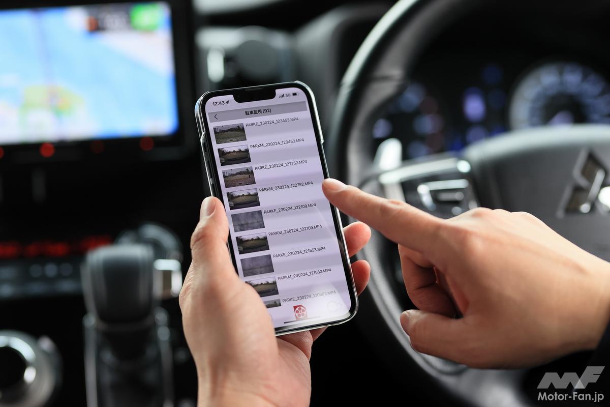 駐車監視機能で記録された映像については、専用フォルダに保存される。専用アプリを入れたスマートフォンとWi-Fiで連携させれば、スマートフォンの画面で駐車監視中に撮った映像を確認することもできるなど使いやすさにも考慮している。