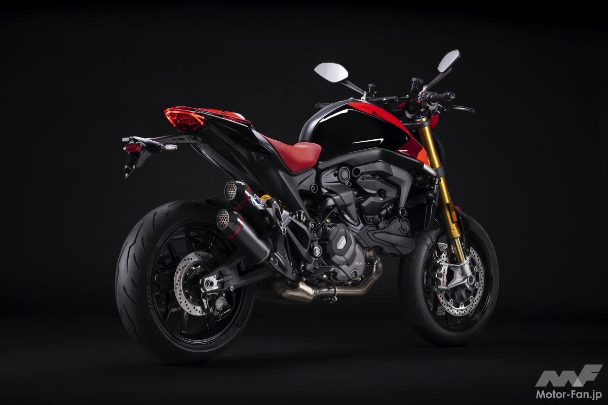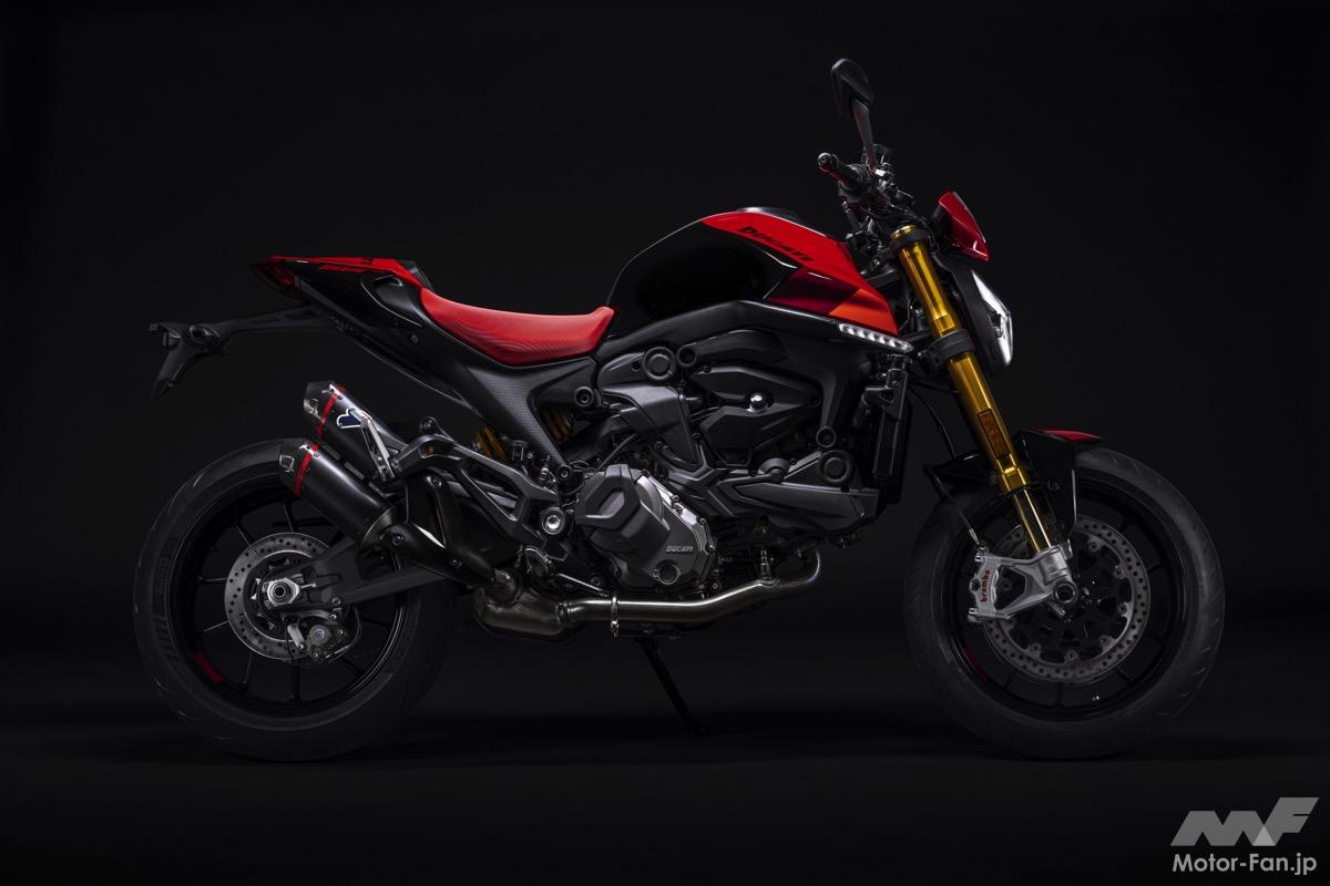 ベースモデルは「モンスターSP」となる。937cc水冷V型(L型)2気筒DOHCエンジンを搭載したコンパクトなモンスターで、最高出力111PS(82kW)/9250rpm・最大トルク93Nm(9.5kgm)/6500rpmのスペックを発揮する。
