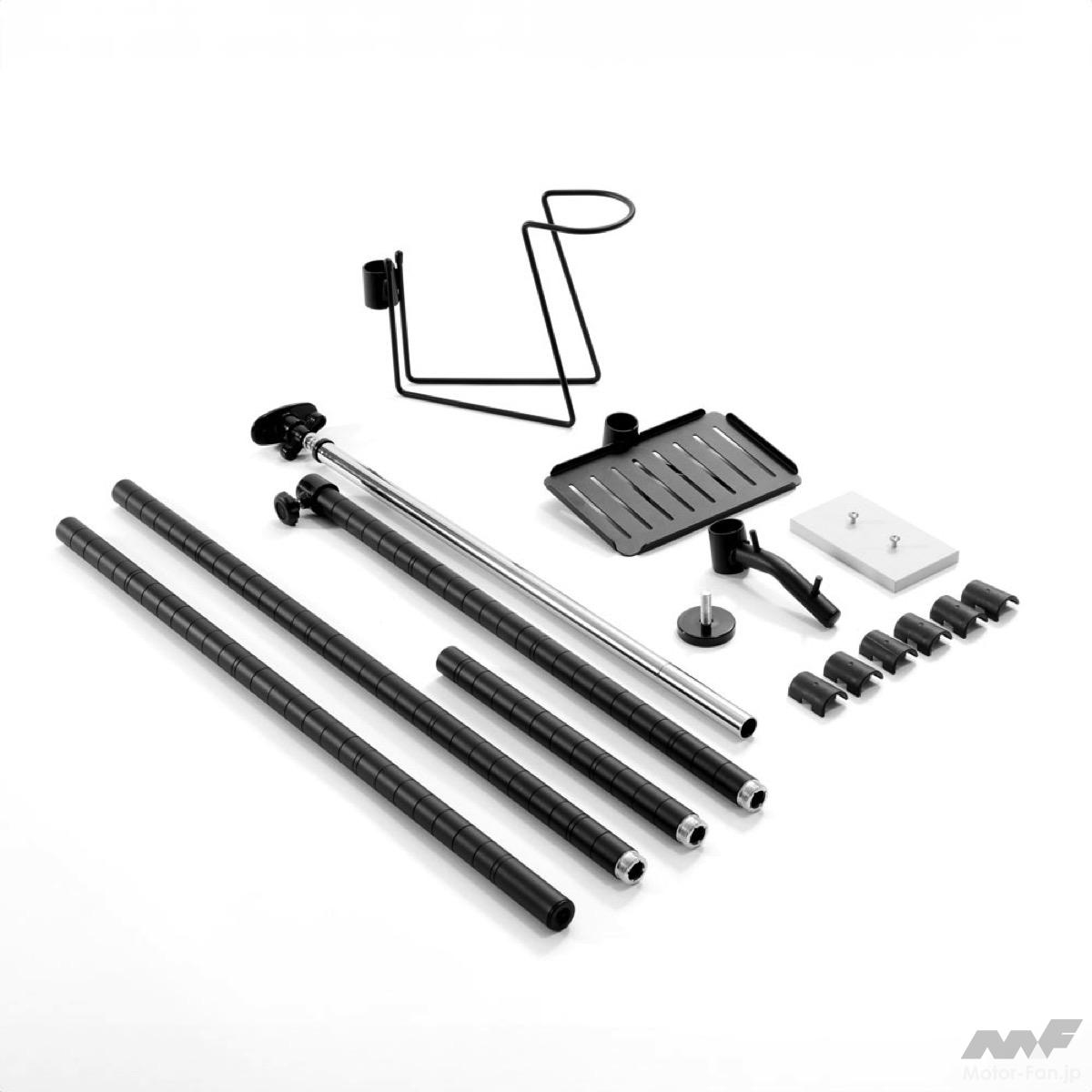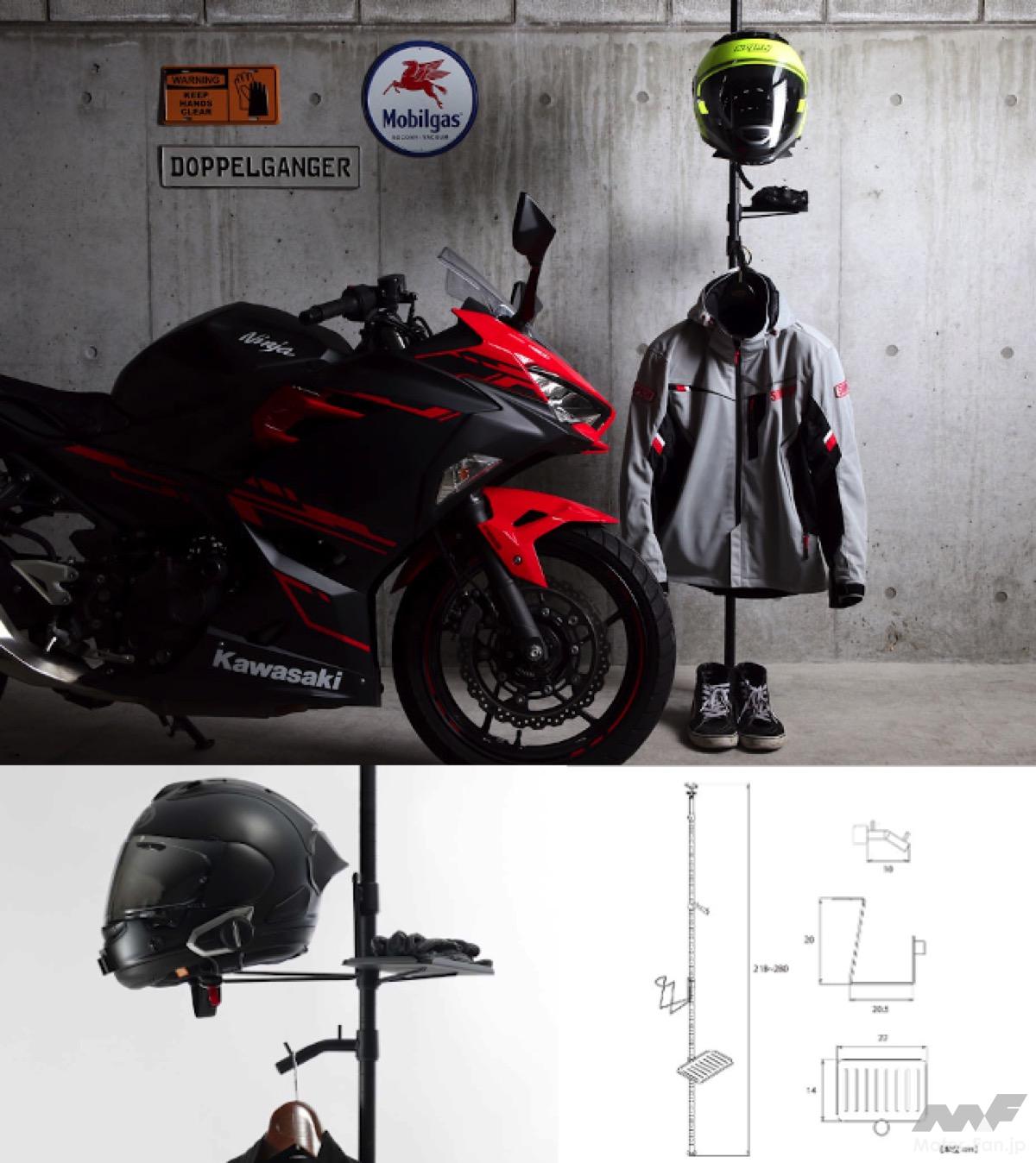 ビーズは、ドッペルギャンガーブランドから「ガレージワンポールラック2」を発売した(オープン価格)。ヘルメット/ジャケット/グローブ/パンツ/ブーツを1本のポールに吊るせる。ウエア一式を縦に収納できるため、収納スペースの削減に寄与できる。天井高218〜280cmに対応する。