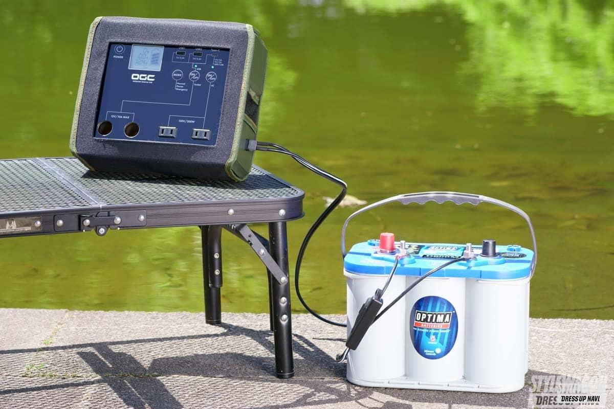 既存のポータブル電源に代わる新発想のシステムで、ディープサイクルバッテリーからDC12V/USB/AC100V電源を取り出して使うというもの。