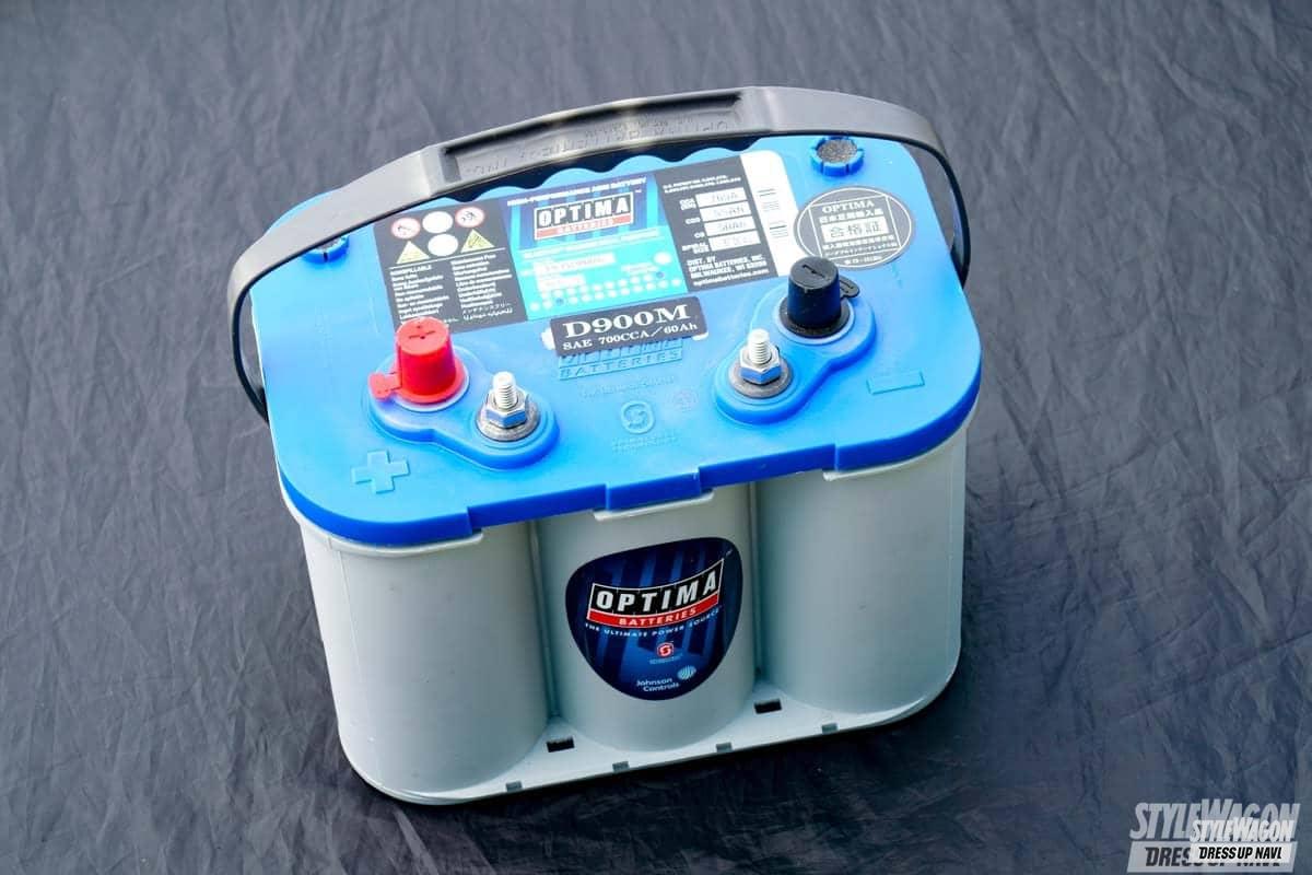 繰り返し放充電できるディープサイクルバッテリー。衝撃や高温に強く、マリンシーンで使用されていることが多い。写真はオプティマ(http://www.gw-i.com)のD900M(3万円前後)。