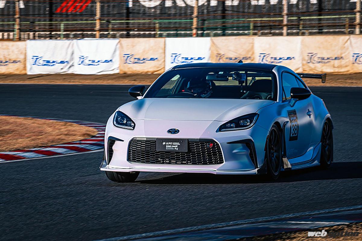 まず一台目は、ストリートをメインにサーキット走行まで想定したGR86。このマシンはHKS×木下みつひろ×APIT東雲×SA浜松の開発プロジェクトのテスト車両として用いられている個体で、HKSとのコラボアイテムとなる車高調「HKSハイパーマックス GATE SPEC」、TWSとコラボした「TWS T-66F A PITブロンズ」、エクセディとコラボした「A PITオリジナルクラッチ」など、一流メーカーと共同開発した多彩なパーツで武装した一台だ。