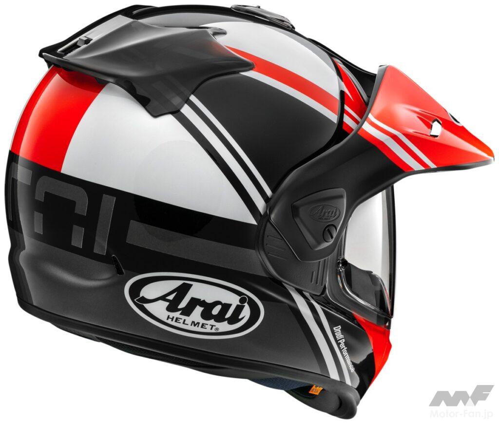 アライヘルメットは、レーシングヘルメット「RX-7X」の新色「NAKAGAMI GP3」と、オフロードヘルメット「ツアークロスV」の新色「COSMIC」を発表した。「RX-7X NAKAGAMI」は11月下旬の発売予定で価格は税込7万9200円、「ツアークロスV COSMIC」は11月中旬の発売で価格は7万9200円。「NAKAGAMI」は、MotoGPに参戦している中上貴晶のモデルで、2023年の日本GPから着用し好評だったスペシャルカラーを再現した。「COSMIC」は、力強いストライプのラインを配色したカラーはブルー・レッド・シルバーの3色を用意する。