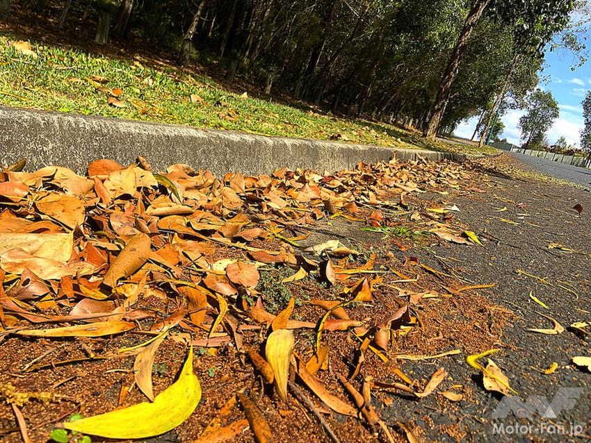 基本的に、落ち葉はなるべく避けて通る方が無難だ。もし安全に避けられず、どうしても通過しなければならない場合は、急ハンドルや急ブレーキなど、急のつく動作を避け慎重に走りたい。特に、見通しの悪いブラインドコーナーなどでは、十分に手前で速度を落とし、「コーナー途中にもし落ち葉があっても対処できる」ライディングを心掛けたい。