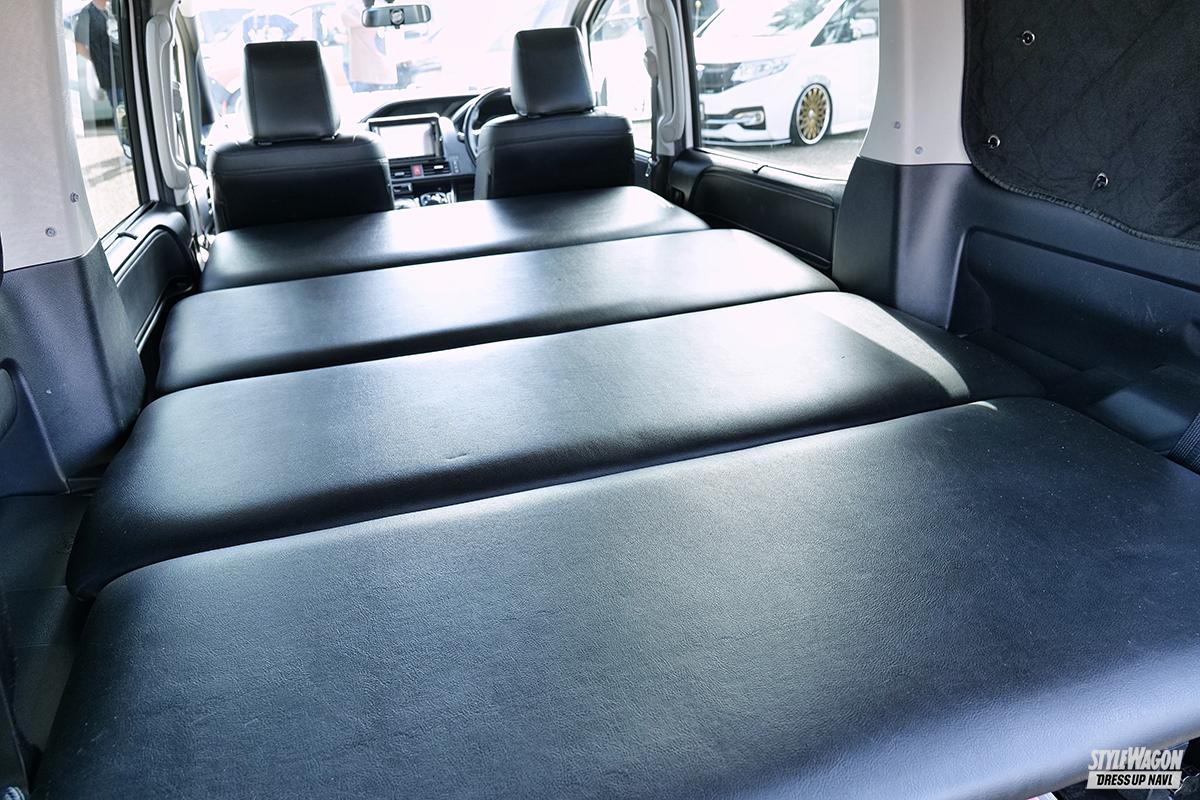 後期用グリル、メッキモールを埋めスムーシング、艶消しブラック塗装でトヨタエンブレムへと顔面変更したエスクァイア。リアフェンダーは叩き出し、ドアミラーも手動式へとあえてのドレスダウン。ワイパーも鉄素材に変更しチープ仕様を演出するなど筋金入り。次は「内装を鉄板剥き出しにしたい」というから“もはやエスクァイアじゃなくても”と言うと、「エスクァイアでやるのがいいんすよ!」と漢気の塊。すべてDIYなのもアッパレっす!