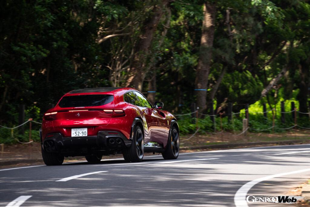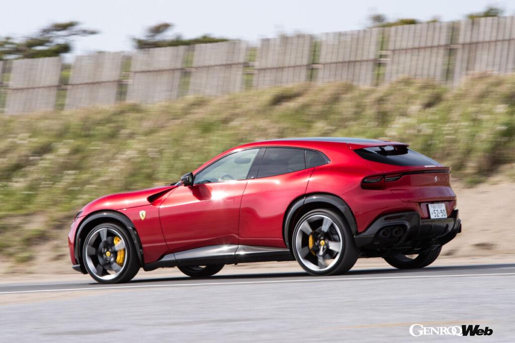 運転感覚にフェラーリらしさを感じるのは、座面高がフロアから近いためだろうか。絶対的な視点の高さは、当然ミッドエンジンフェラーリやGTC4ルッソよりも高いが、せいぜい一般的なサルーン程度の高さに感じる。見た目はこれまでよりも少し背が高く見えるが、その走りはこれまでフェラーリが積み重ねてきたスポーツカーの流れに沿ったものだ。限りなくスポーツカーに寄せたクロスオーバーというカテゴライズが正しいように思った。