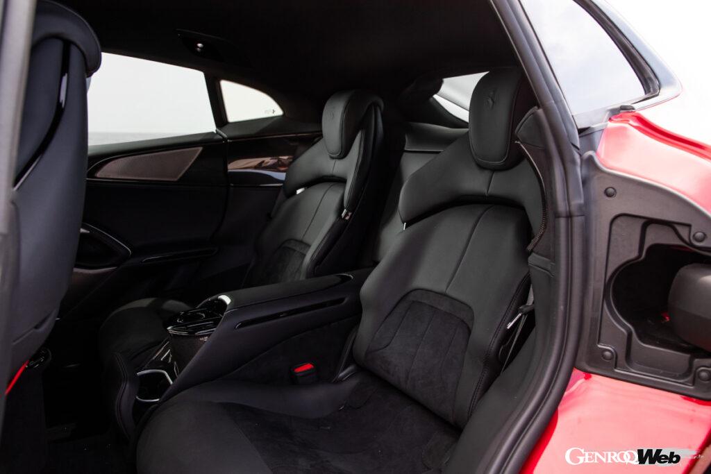 リヤドアはヒンジが後ろにある観音開きで、電動で外からも内側からも開閉操作できるのが特徴だ。フロントドアは通常どおりに開く。インテリアはローマ以降に採用された最新デザインを踏襲するが、要所要所296GTBとインターフェイスが異なる。