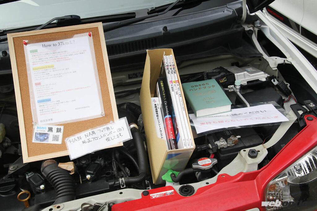 すでに満タンで1000km走行を達成(リッター37km/L)しているが、「最終的にはリッター40km/Lを目標にしているので、まだまだ進化の途中って感じですね。現在はフォグ無しのフロントバンパーを探していて、これが手に入れば600gの軽量化が可能。空気抵抗も軽減するはずです!」と今後の目標を熱く語ってくれた“黒鉄”さん。