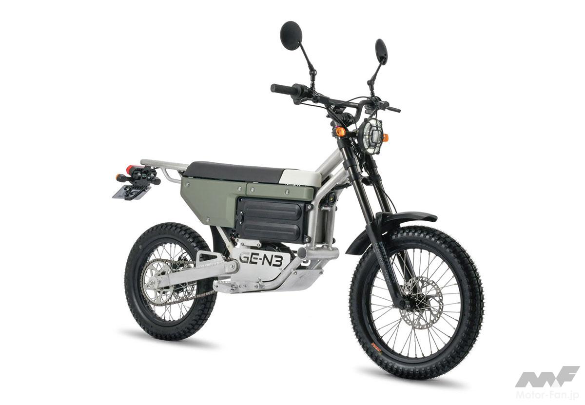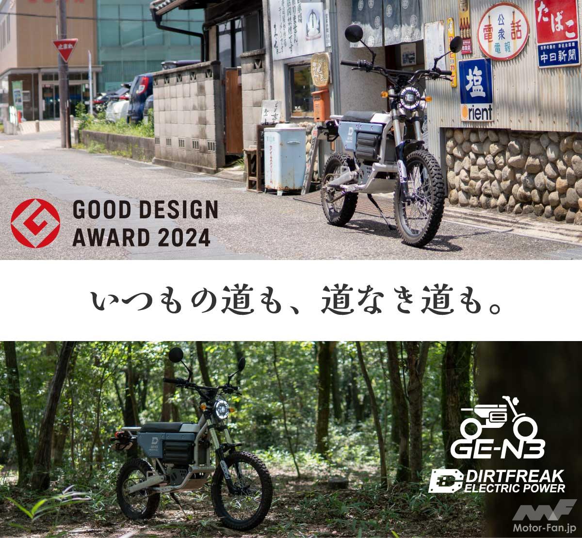 オフロードバイク・自転車に特化した用品を取り扱うダートフリークは、新事業としてEVバイクの製造・販売を開始する。第1段のモデルは原付一種の「GE-N3(ゲンサン)」。マウンテンバイクと原付を融合したようなデザインで、オフロードに対応したEVバイクだ。価格は税込39万6000円で、2025年3月の発売予定。最高速度は55km/h、航続距離は最大70kmとなる。重量58kgと軽量で、山道で楽しく遊べそうだ。