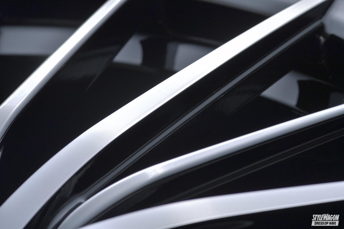 もうひとつの2024年モデルとなるレオニスFRは、細身ながらも密度の高い20本フィンスタイルで、スリムでスマートだが重量級なミニバン系ボディにも引けを取らない存在感を確保。天面切削を施した10本スポークと、その間に配置したサブスポークとの高低差が立体感も際立たせてくれて、しかもスポーク全体にヒネリを効かせることでバツグンの足長感、躍動感も手に入れられる。