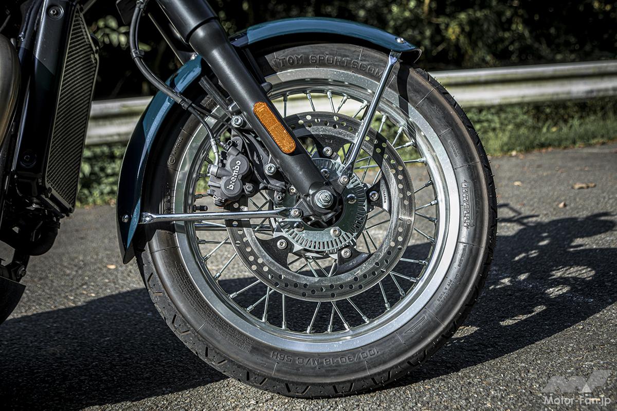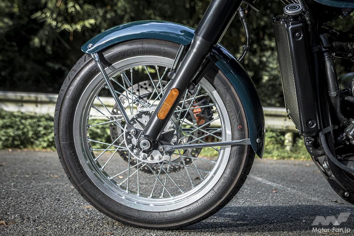 フレームのデザインもイギリスで行われた。旧車らしさが漂うスタイリングでまとめられていて存在感もある。旧車好きなテスターはこのマシンを最初に見たとき「いいじゃないか」と声が出てしまったほどである。