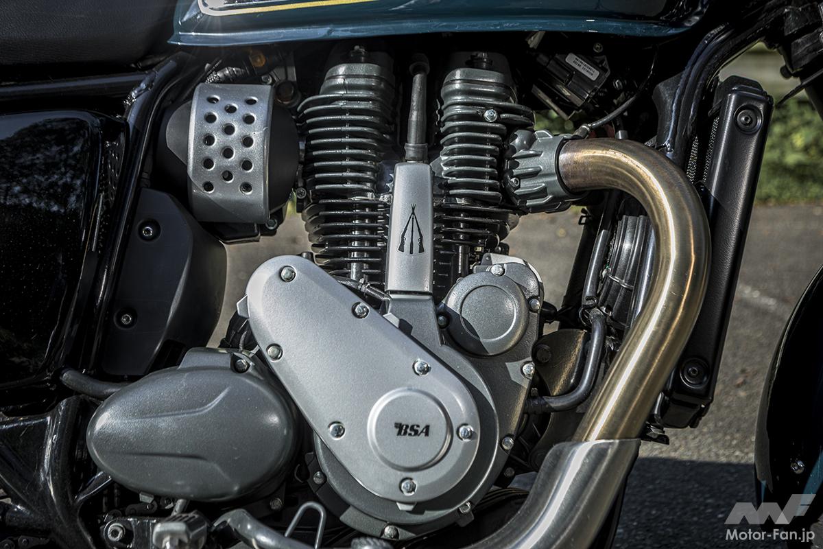 資本はインドだがテクノロジーはヨーロッパが中心だ。エンジンはBMW F650に搭載されていたロータックスをベースとし、イギリスでレイアウトを変更。シリンダーを直立させてイメージを一新し、ヘッドも新たに設計されている。