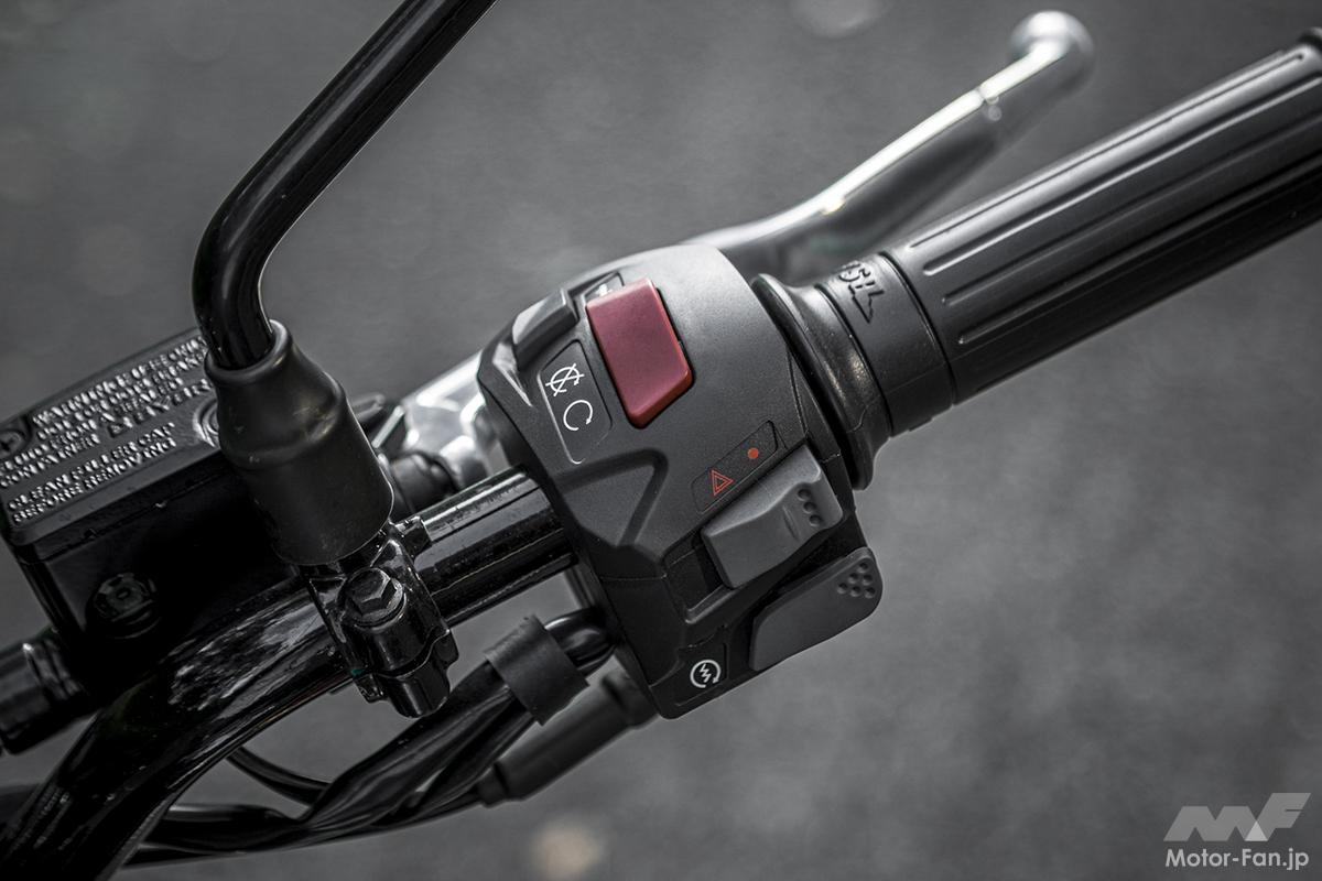 エンジン以上に驚かされたのがハンドリングだった。実にスポーティに走ることができるのだ。倒し込み自体は軽快なのだが、ステアリングの反応がドッシリしていて安定感が高め。個人的にはもう少しシャープな方が好みだけれど、それはライダーの好みの問題。現状でも相当に思い切ったライディングができる。しかも前述したエンジンだから立ち上がり加速も鋭い。バンク角も深いので乗り手によってはワインディングを駆け抜ける。スポーツバイクに乗っているライダー達を驚かせることになるだろう。
