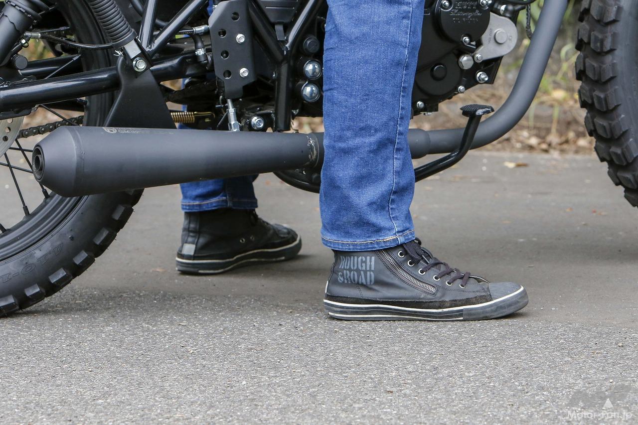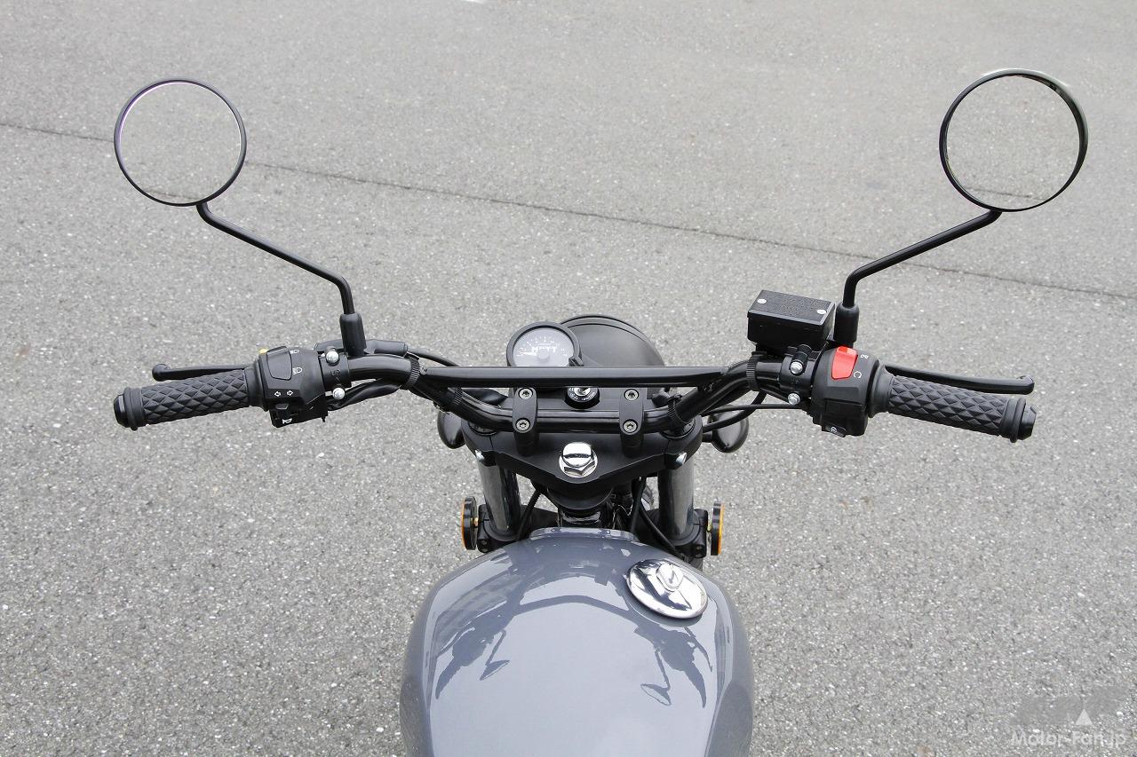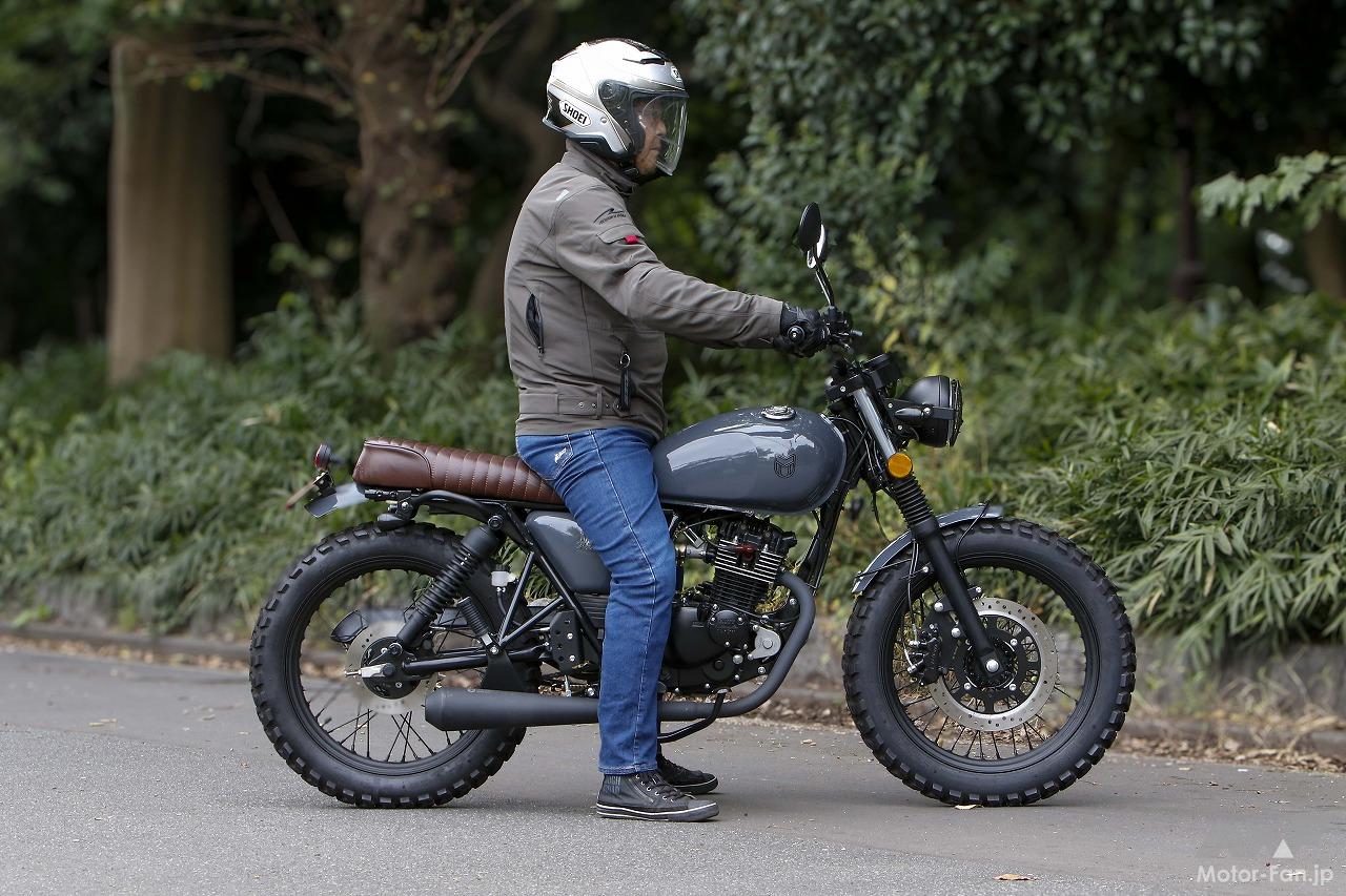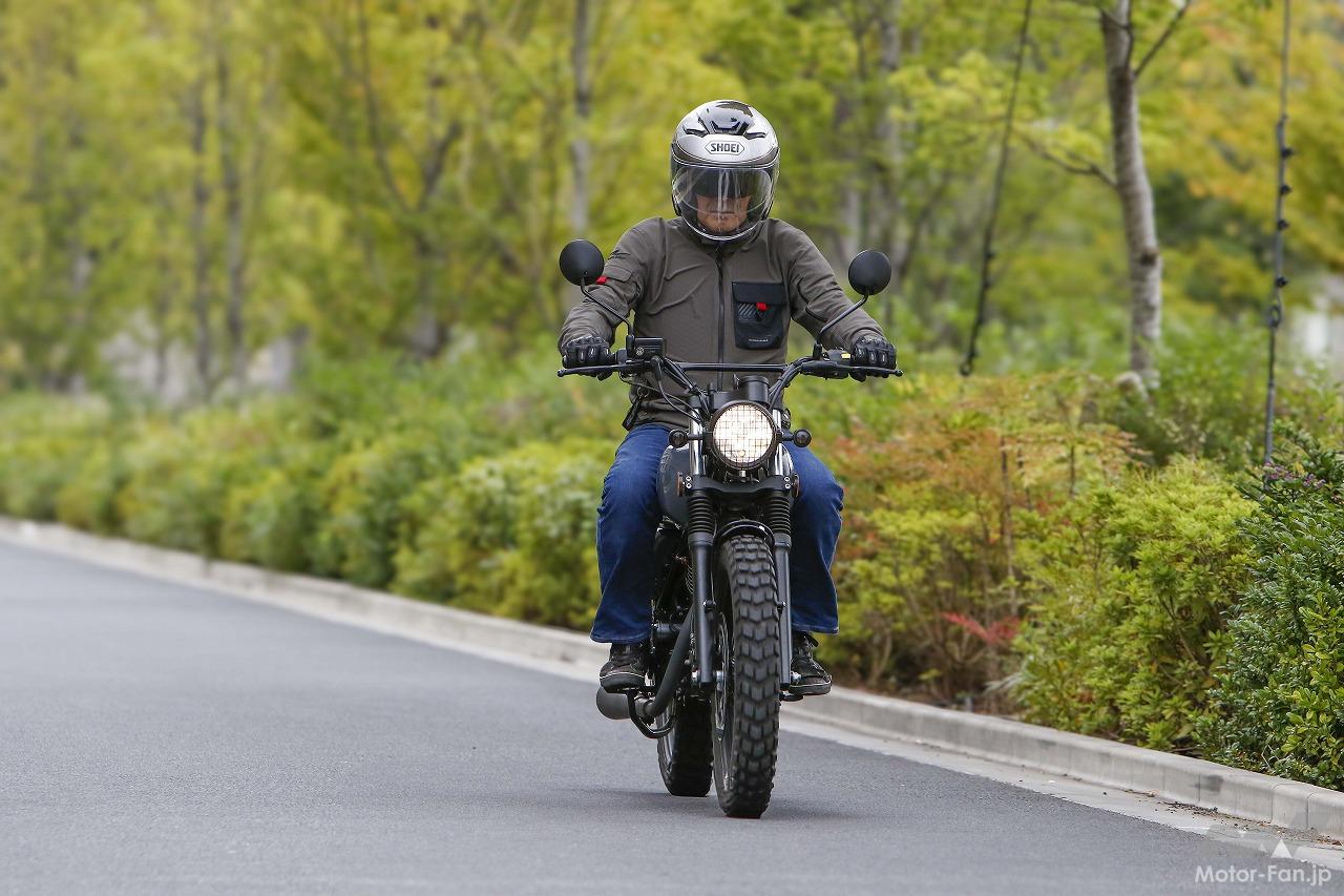 エンジンはシンプルな空冷シングル。スズキGN125をベースにしたもので5速ミッションを採用しています。最高出力は11ps程度なのでパワフルな印象はありません。しかしスムーズにレスポンスする特性でだれにでも扱いやすく、ストリートでの発進加速に不足はありません。パワー、トルクともに適度なものなので、日常的にアクセル全開にできる爽快感が味わえるのがひとつの利点です。市街地走行から郊外のツーリングといった使い方にはちょうどいいと思いました。ただし、上りが続く峠道などでは加速が要求どおりにいかず若干ストレスがたまるかもしれません。まあ125㏄なのでそんなものかと理解して走る必要があります。
