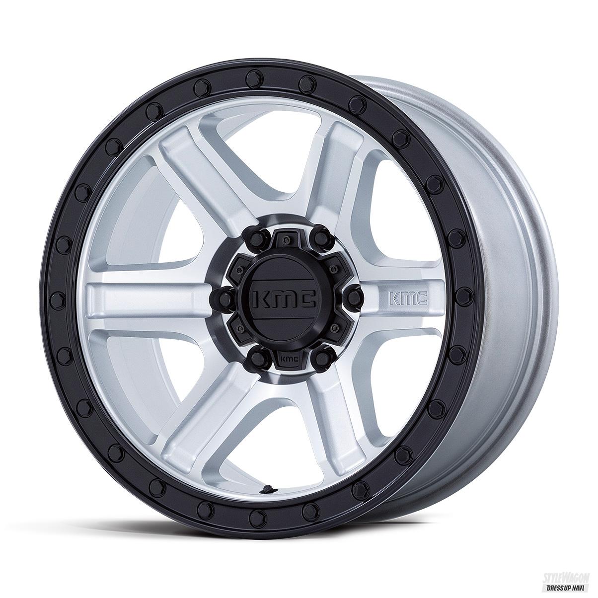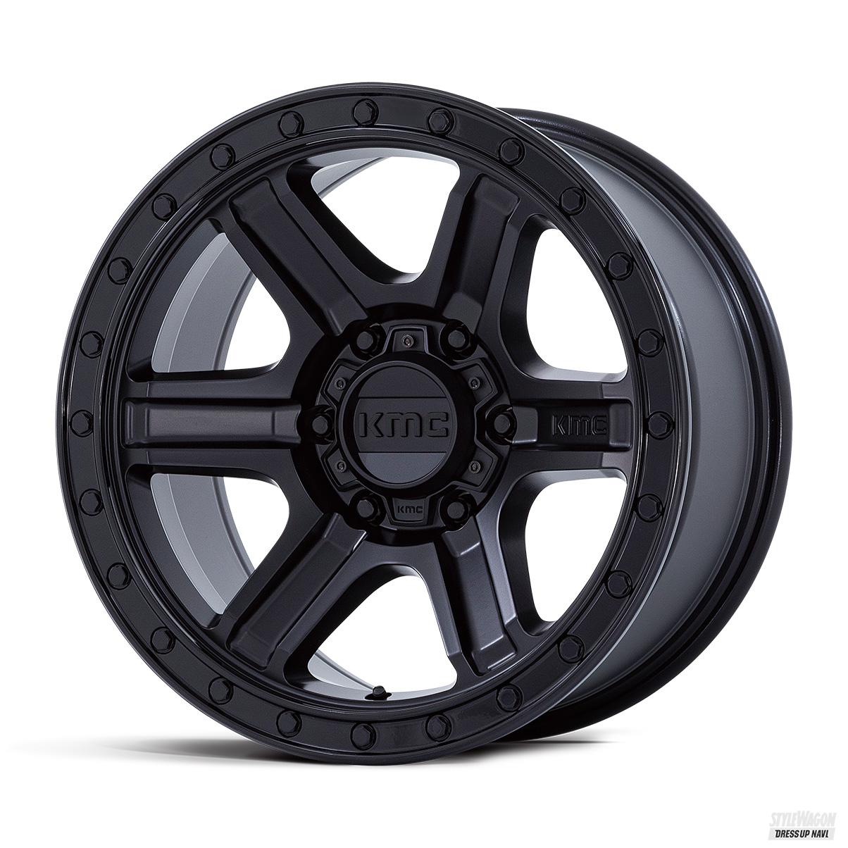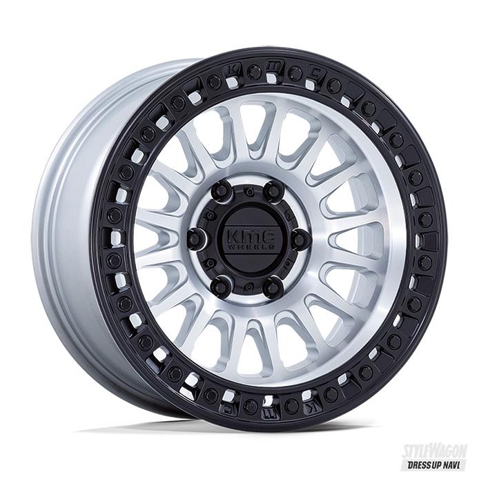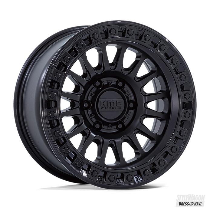 サイドを立ち上げた6本スポークを採用し、センターを落とし込んだ迫力のあるフォルムが印象的なKM551アウトラン。ビードロックテイストのリムフランジには、ワイルドな大型ピアスを配置。強靭で安定感のある足元を演出してくれる1本だ。