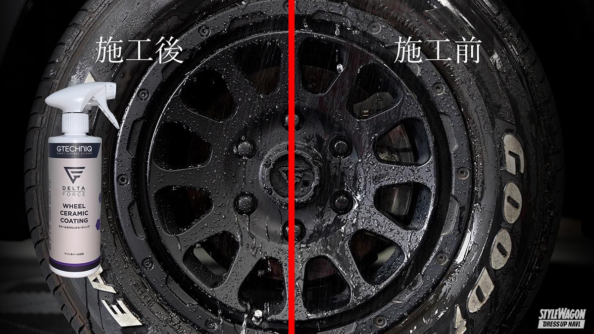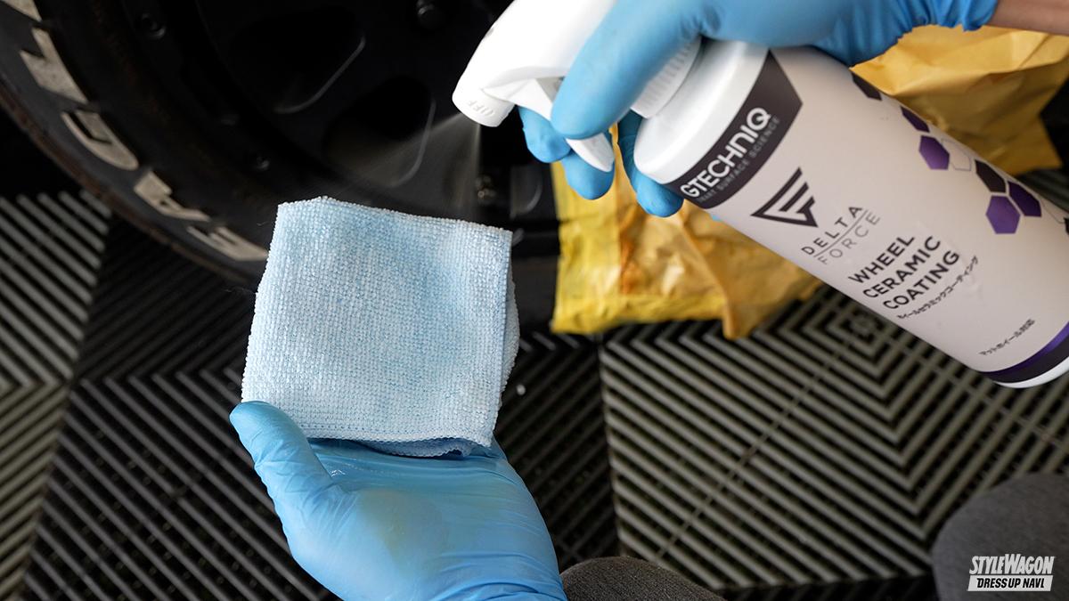 DIY・メンテナンス ホイールのマットな質感が復活できる! リムーバー&コーティングの効果が凄い!【写真・4枚目】 デルタフォース・ホイールウォーターリムーバー&ホイールセラミックコーティング BEFORE AFTER まずはホイール表面に付着している汚れを中性洗剤で洗い流し、綺麗に水気を拭き取る。 リムーバーはスプレータイプなので乾いたウエスに吹きかけて、ホイールに塗り込んでいく。 ホイールナットもマット系であれば、同様に塗り込む。あとは洗い流し、拭き取るだけ。 コーティング剤も同じくスプレータイプ。こちらを施工する際はホイールを乾かしておく。 綺麗なウエスにコーティング剤を吹き付けて、ホイールやホイールナットに塗り込んでいく。 塗り込んだコーティング剤が乾く前に綺麗なウエスで拭き上げてコーティング作業は終了。 この画像の記事を読む