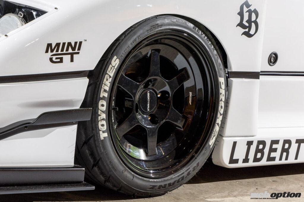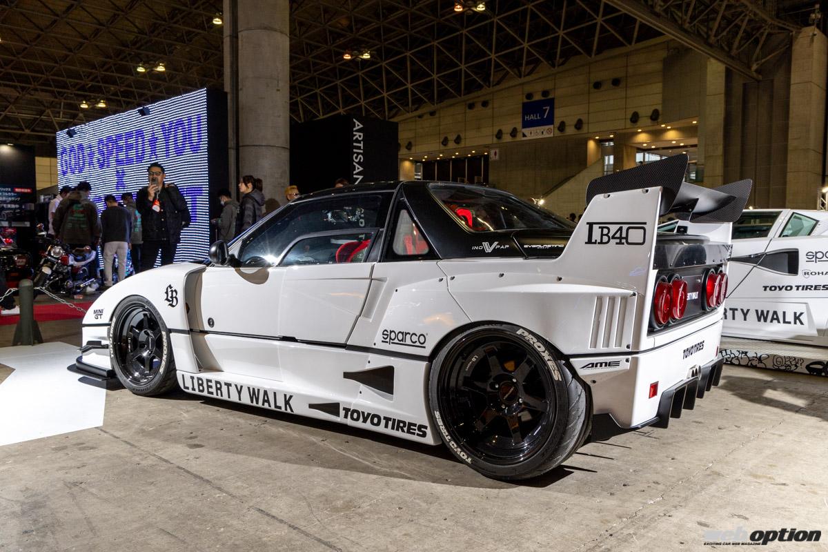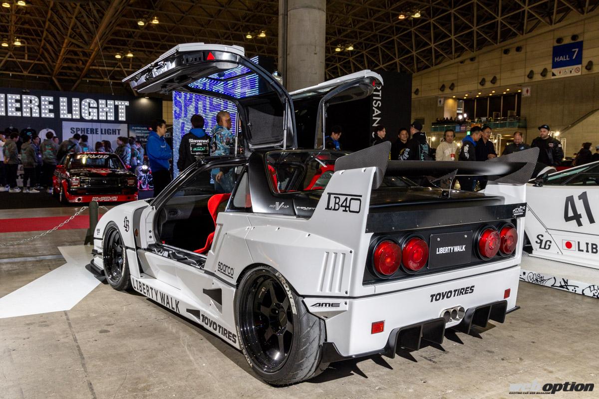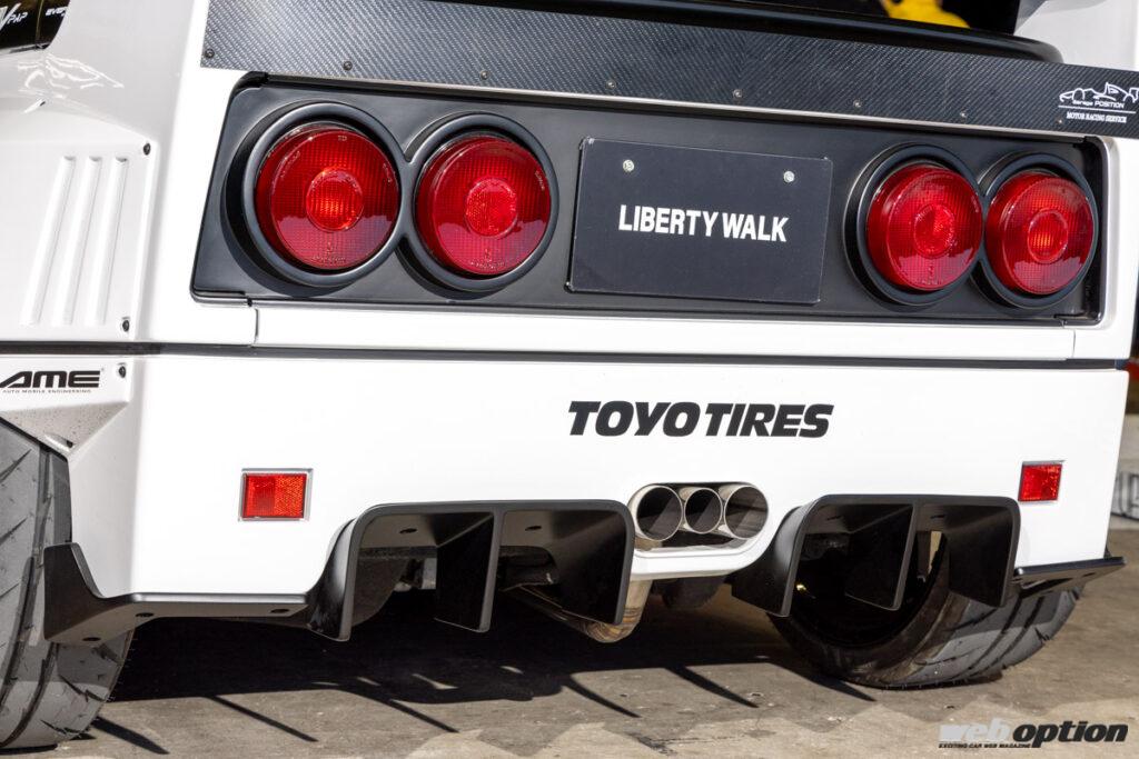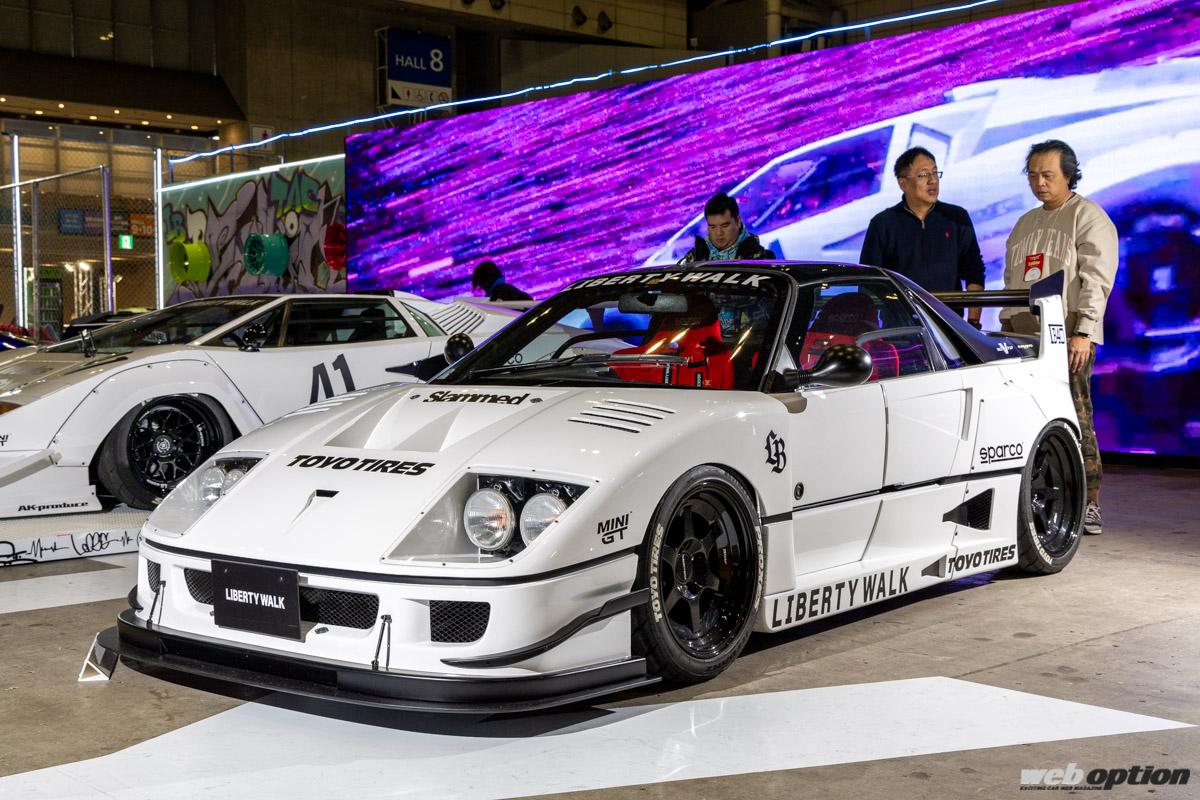 スーパースポーツにワークスフェンダーを組み合わせた“掟破り”のスタイルで、停滞しがちだったエアロシーンに一石を投じた“リバティーウォーク”。ここで紹介するフェラーリF40ルックのAZ-1は、そんな名門ビルダーが遊び心で作り上げた作品だ。