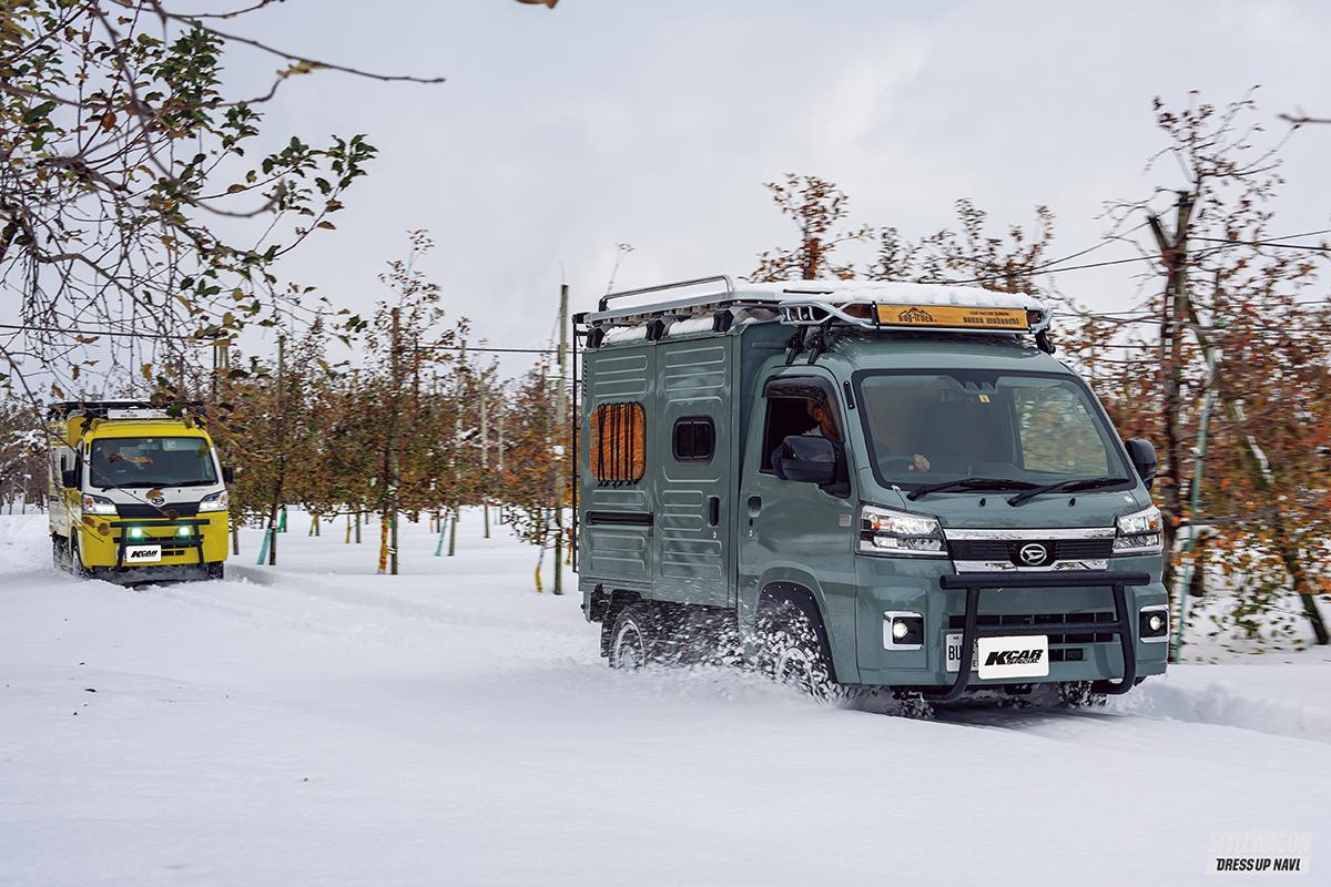 またパネルバンはスプリング交換で1.5インチの車高アップを実現するリフトアップキットを装着済み。通常の軽トラよりも悪路や雪道の走破性能が高められている点も心強い。