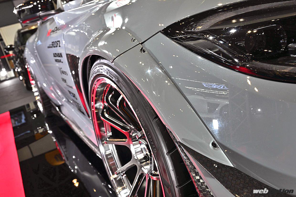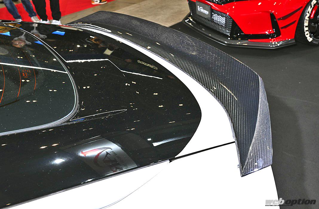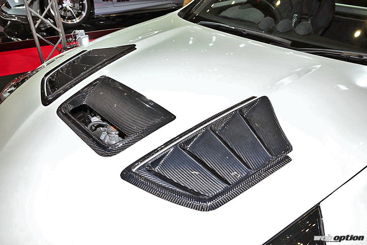 ワイド専用の各スポイラーは、軽量&高剛性な12Kカーボンのスペシャル仕様となっているのも大きな特徴。なお、この車両はチューニングショップ“オリジナルランデュース”のデモカーで、今後は各地のサーキットで暴れ回る姿を見れるはずだ。