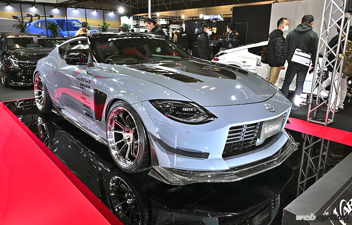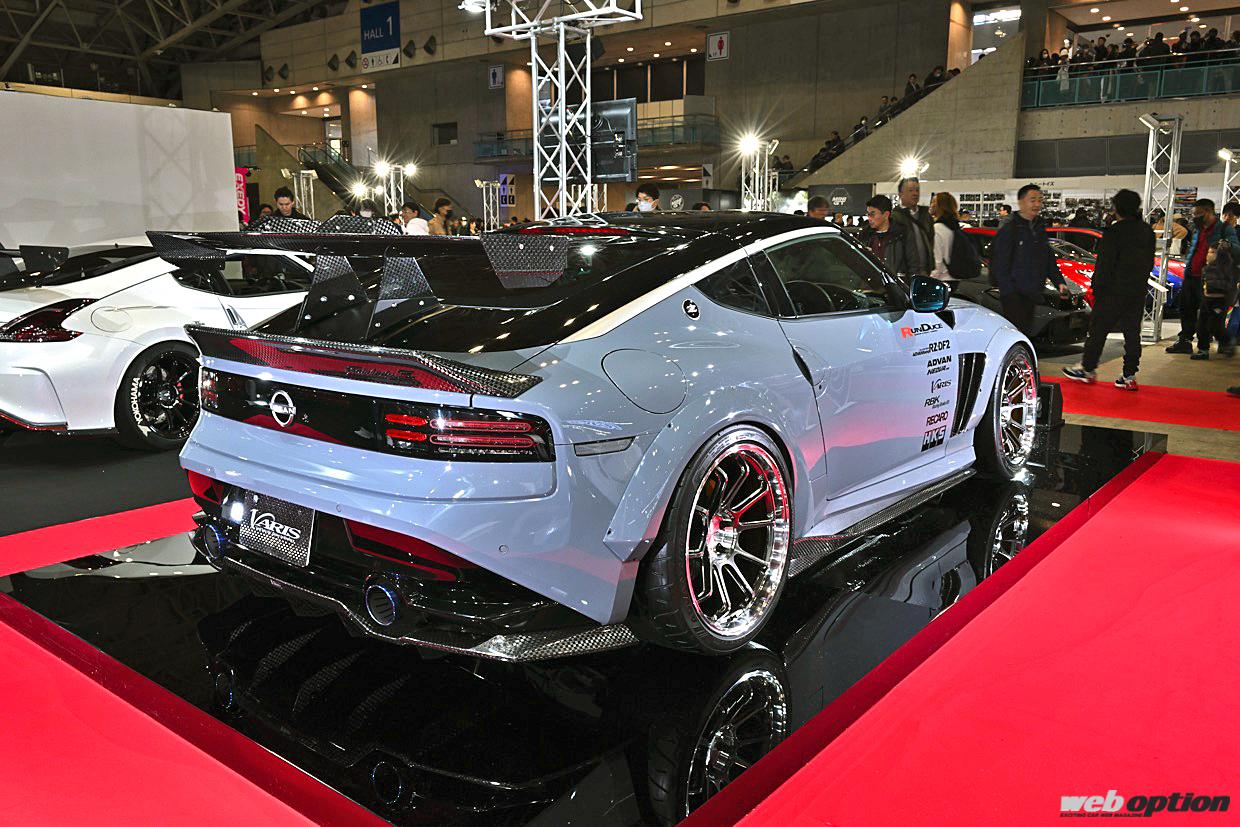 昨年の東京オートサロン2023で発表した純正ボディ対応の「アライジング1」を、さらに進化させた「アライジング1.5」的なワイドバージョンの登場だ。キーパーツとなるワイドフェンダー(F30mmワイド R45mmワイド)は、あえてS30Zに通じるオーバーフェンダースタイルでアレンジしている。