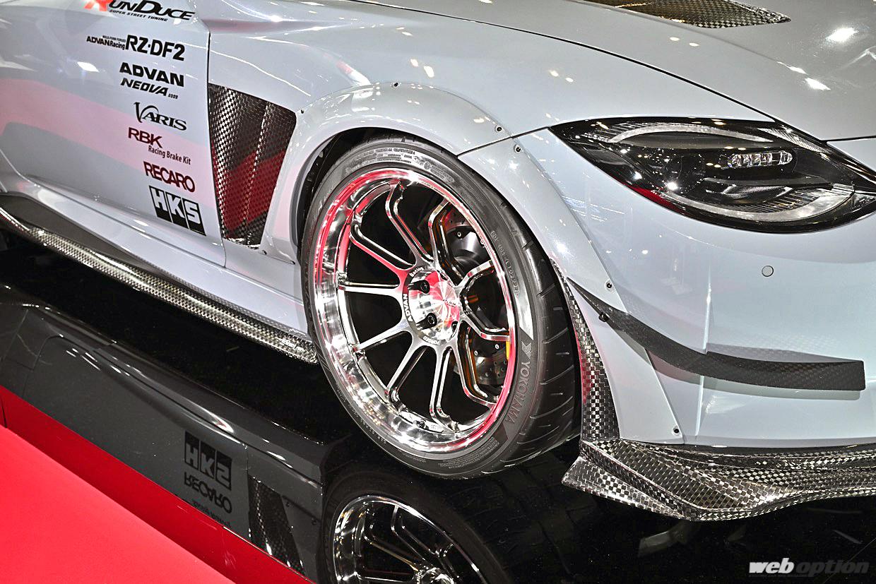 また、展示車両がインストールしているホイールは、往年のIMSA 300ZXをリスペクトした鍛造削り出しのオリジナル20インチで、販売も視野に入れているというから注目したい。