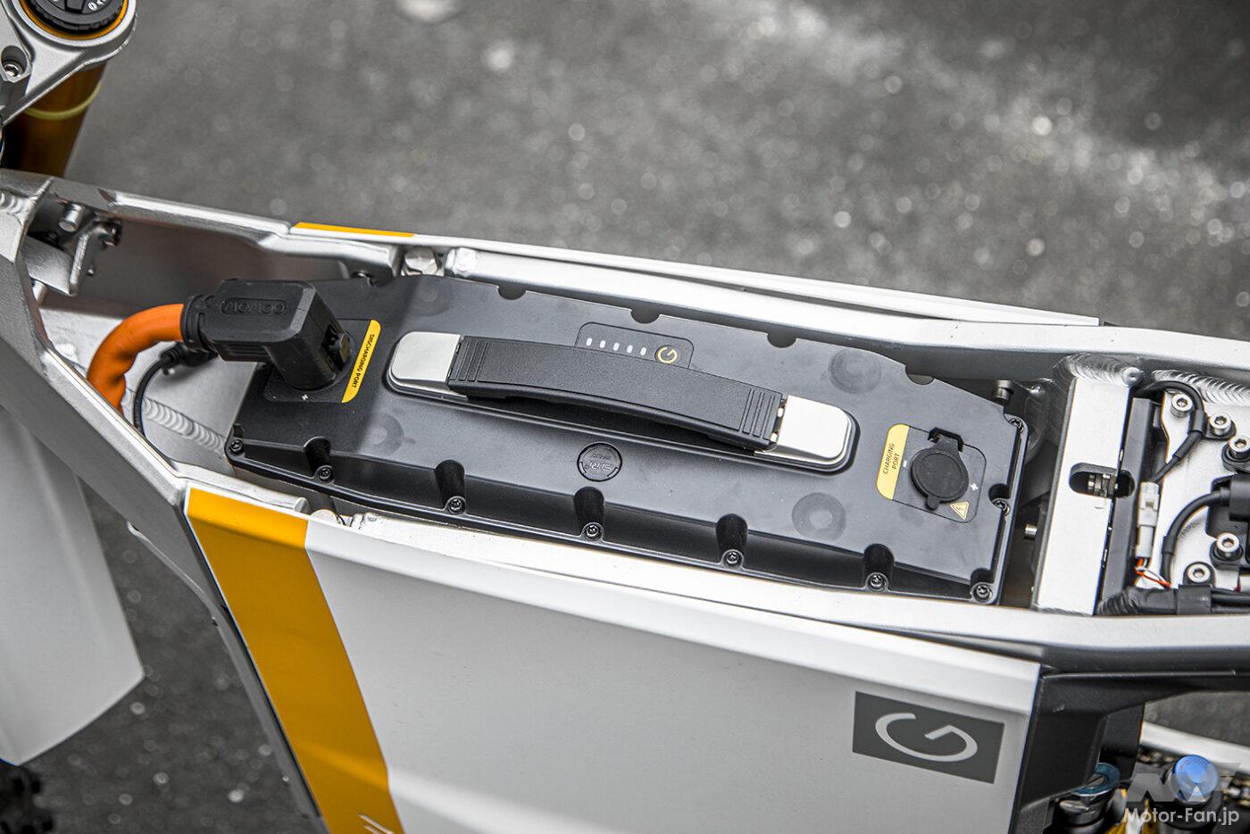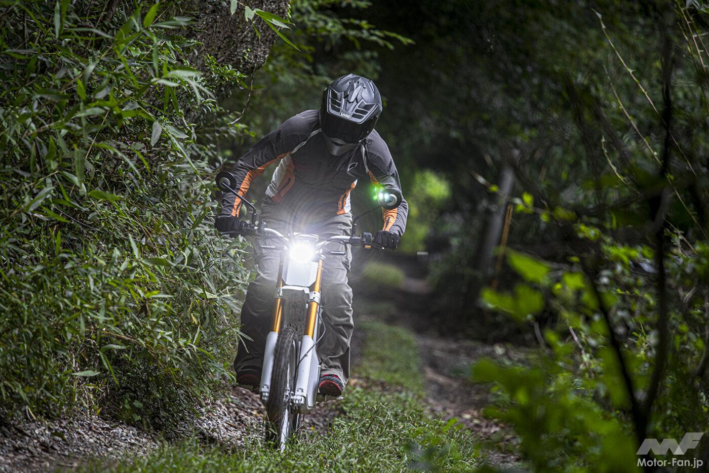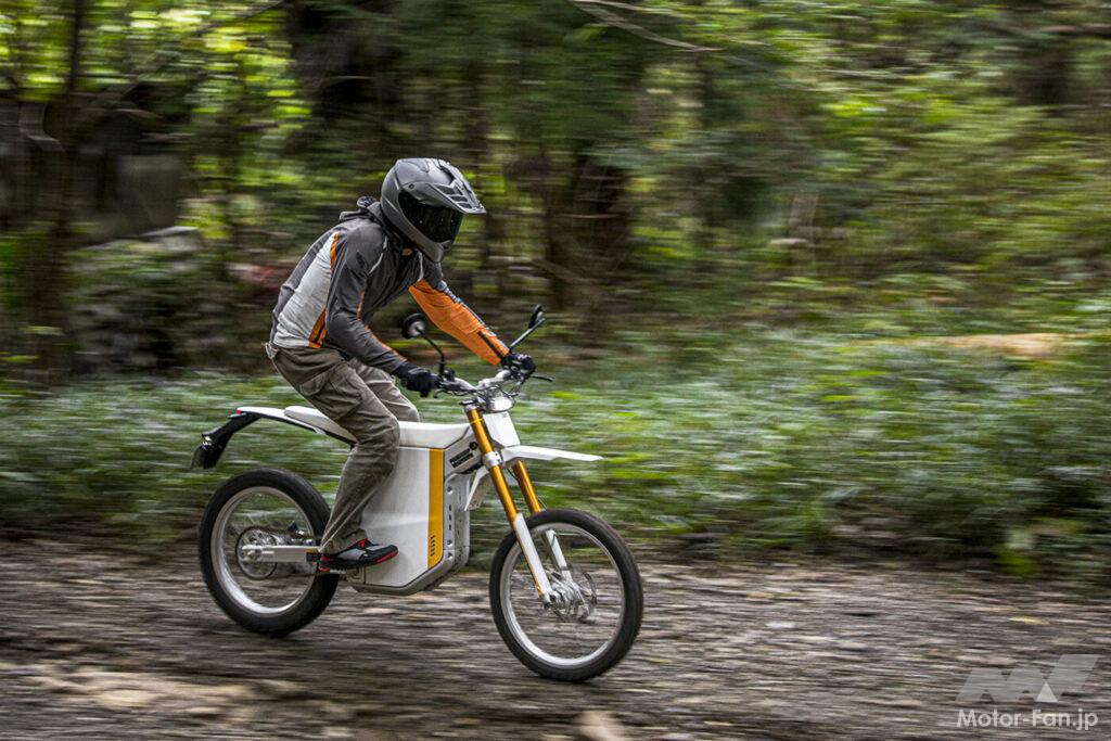 なお変幻自在で頼りがいがあるパワーユニットに加えて、オフロードを走るうえでは、クラッチ操作とギアチェンジが不要なのでスロットル操作やブレーキング、ライン取りなどに集中できること、車体が軽くて細くて小さいことも(車重は73kg)、電動バイク/オーリの美点である。いずれにしてもこのモデルには、既存のトレールバイクとは異なる魅力が備わっていて、レベルが大幅に異なっていようとも、全日本トライアル選手権に電動バイクで参戦するトッププロも、同じような印象を抱いているはず……と、僕は感じているのだ。