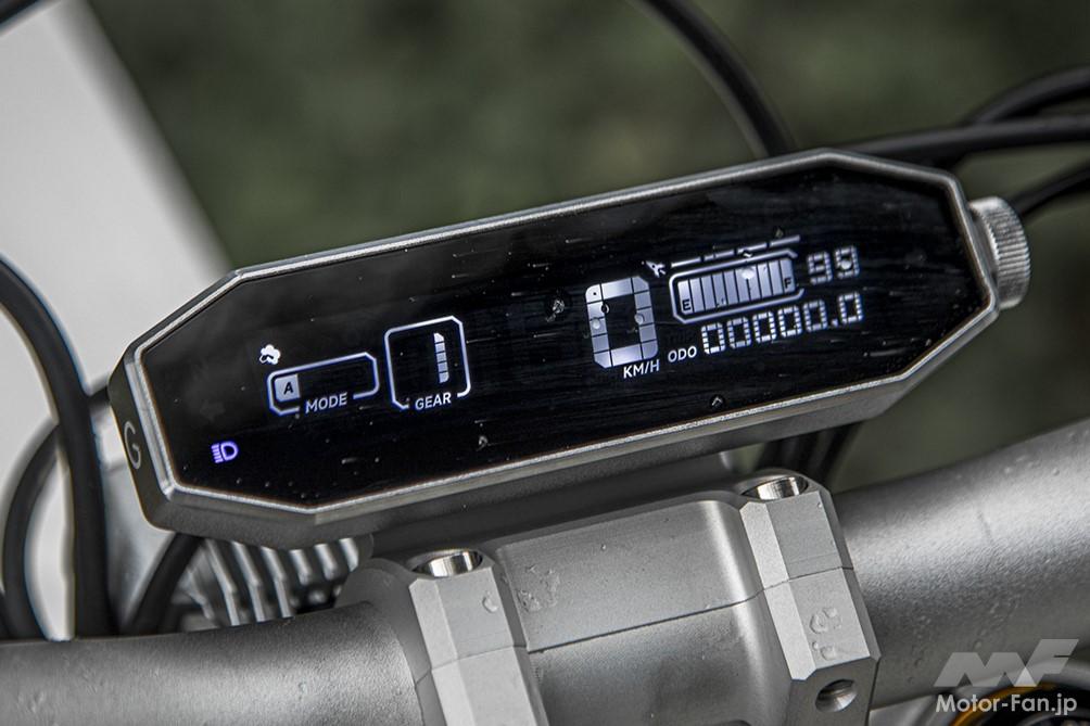 もっとも、今回の試乗で未舗装路に入った直後の僕は、ジャジャ馬的な特性に困惑していた。何と言ってもオーリは、往年の50ccトレールバイクより軽くて細くて小さな車体に、42Nmの最大トルク(近年の400ccスポーツは37~39Nm近辺)の最大トルクを発揮するモーターを搭載しているのだから、それはまあ当然だろう。ところが、パラメーターの設定を変更してみると……。