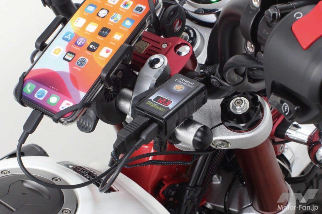 後付けタイプのUSB電源は安価なものから多機能なものまで数多く販売されているが、急速充電機能が備わっているものはまだまだ少ない。スペシャルパーツ武川(以降、SP武川)から発売された「USBチャージャー(2ポートTYPE-A/C)」は、急速充電に対応した2つのポートを備え、USBタイプAポート側はQC3.0に対応した出力電圧5V、/3.4A、9V/2.5A、12V/2A、USBタイプC側はPDに対応した出力電圧5V/3A、9V/2.22A、12V/1.67Aとなっている。本体には電圧計を装備しているので、車体側の電圧をリアルタイムで表示してくれる。バッテリーの電圧管理が行えるので、バッテリーの状況を把握してトラブルに備えることができる。また、充電器本体にON/OFFスイッチを備え、不使用時には電源をオフにしておくことで、バッテリーの無駄な消費を抑え、スマホやタブレットの保護も可能。出力が大きいのでアクションカメラやノートパソコンの電源としても活躍できそう。