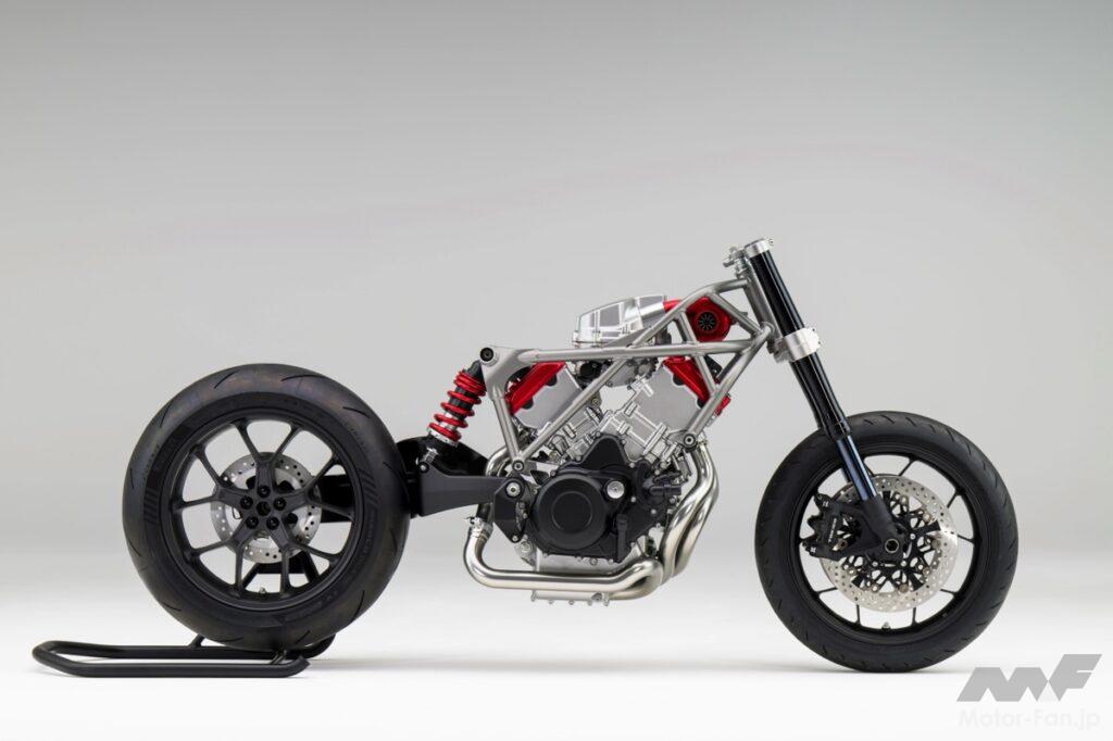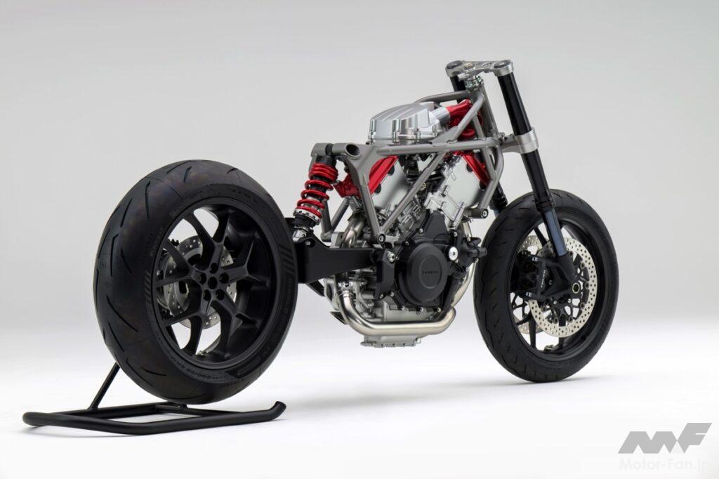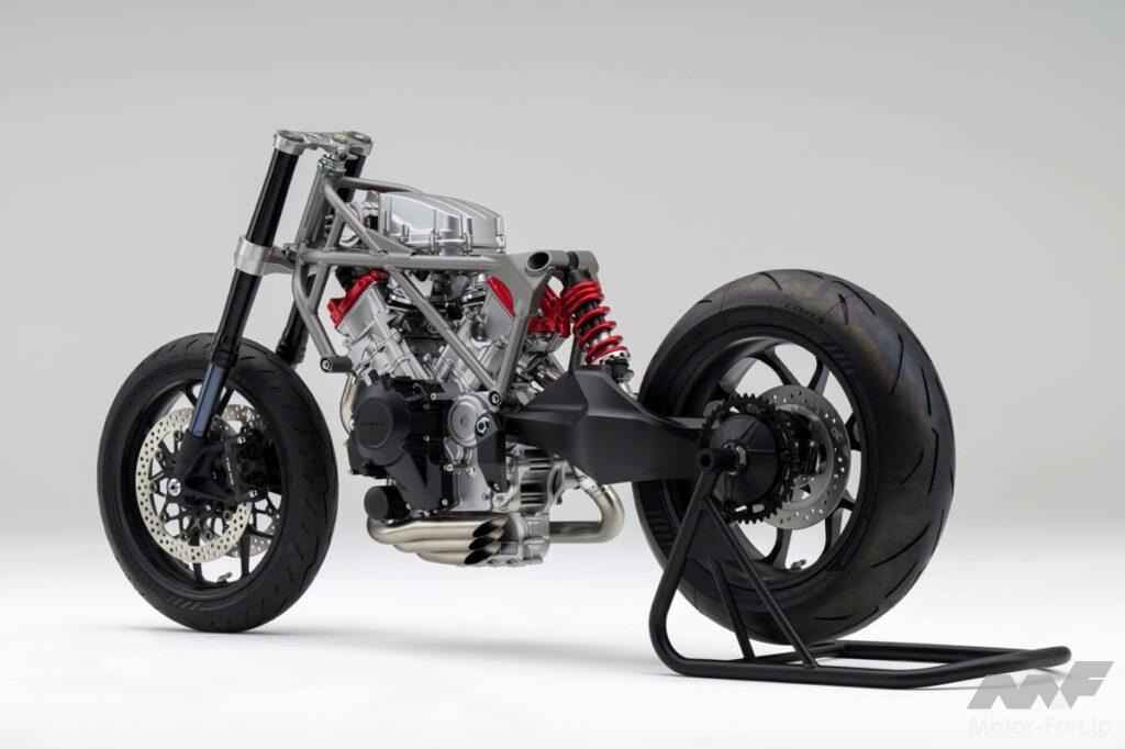 V型4気筒とすれば横幅が抑えられるものの、ライダーの股下に並列2気筒のブロックが来るため座りづらくなってしまう。前2気筒・後単気筒の3気筒とすれば、バイクはスリムなままパワーの向上を見込める。