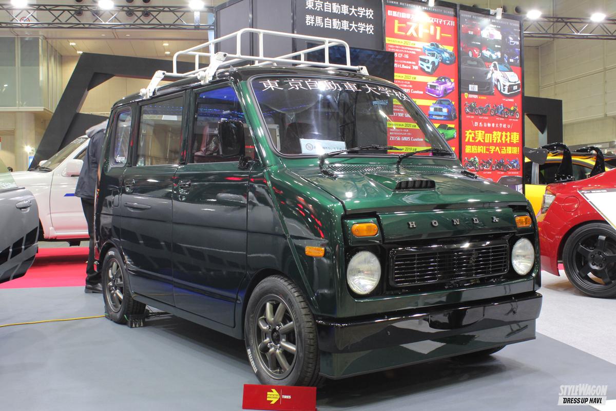 佐渡島で15年間放置されていたというライフステップバン。昭和49年式、さらには屋外で放置されていたこともあり、かなりひどい状態だったそう。そんなライフステップバンをレストアの教材として東京自動車大学校に寄贈されたのが5年前。当時の学生達が授業の一環としてレストアしたが、その後輩にあたる現在の学生が東京オートサロン出展のため、ライフステップバンのカスタムに挑戦した。