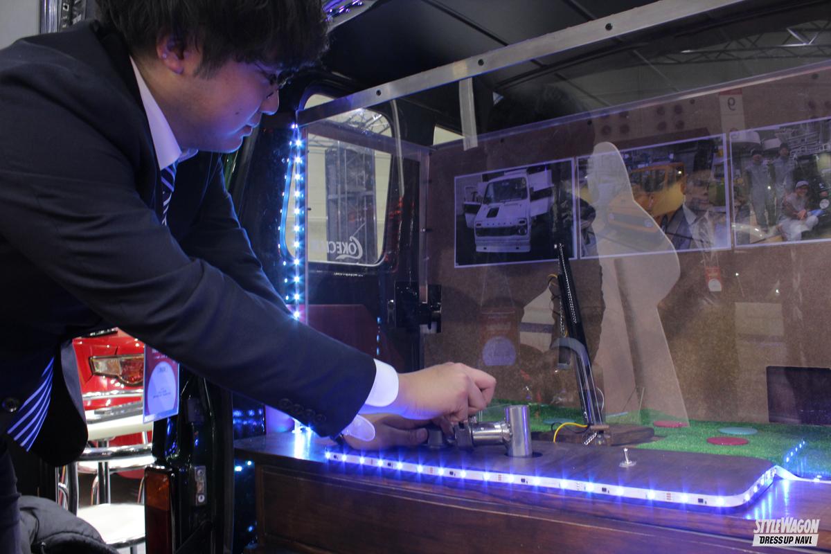 そして「アソビココロ」が一番詰まっているのがラゲッジまわり。リアゲートを開けて飛び出したのはクレーンゲーム、しかもあえてのアナログ式。クレーンをハンドルでくるくる回して、磁石でコイン(!?)をキャッチする仕組み。大人も子供もワクワクしてくるライフステップバン、サイコーです!