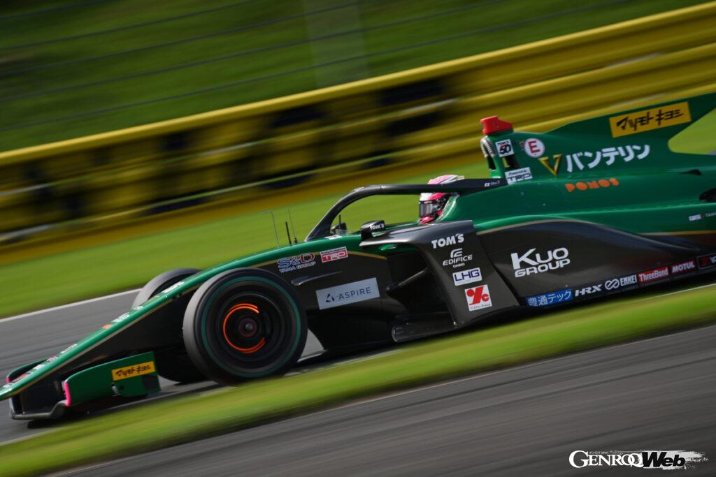 第3戦は仙台スポーツランドSUGO。予選は気温31℃、路面温度50℃という6月とは思えない真夏のようなコンディションの中で行われ、野尻選手と岩佐選手によるTEAM MUGENチームメイト同士の一騎打ちの様相を呈しますが、野尻選手が今季初のポールポジションを獲得し、岩佐選手が僅差で続きます。決勝日は朝から降雨と濃霧の荒天となり、セーフティカー先導でのスタートでレースが始まります。しかし最終コーナーでクラッシュが多発、天候の回復が見込まれず、14周終了時点で打ち切りとなります。結果は予選順位そのままに、野尻選手、岩佐選手、坪井選手がトップ3で表彰台に立ちました。