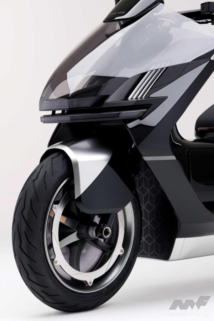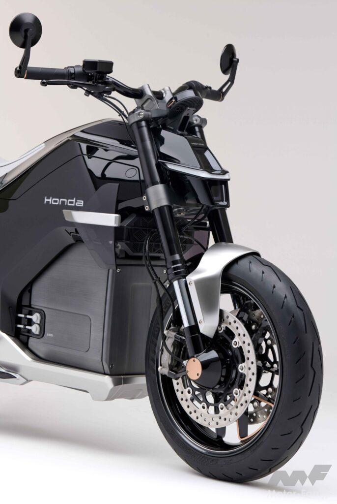 Hondaが長年にわたって培った二輪車開発の技術をフィードバックして、高次元での「走る」「曲がる」「止まる」の性能に加え、電動車の特徴でもある静かで振動のない新しい乗り心地、固定式バッテリーの採用によりスリムで扱いやすい車体パッケージでガソリン車とは異なる新感覚な体験を実現して、新たなモーターサイクルライフをサポート。四輪車と同じ規格の急速充電器CCS2に対応し、軽さとのバランスを最適化。急速充電に対応していることで、街中での使い勝手に十分な航続距離100km以上を想定している。