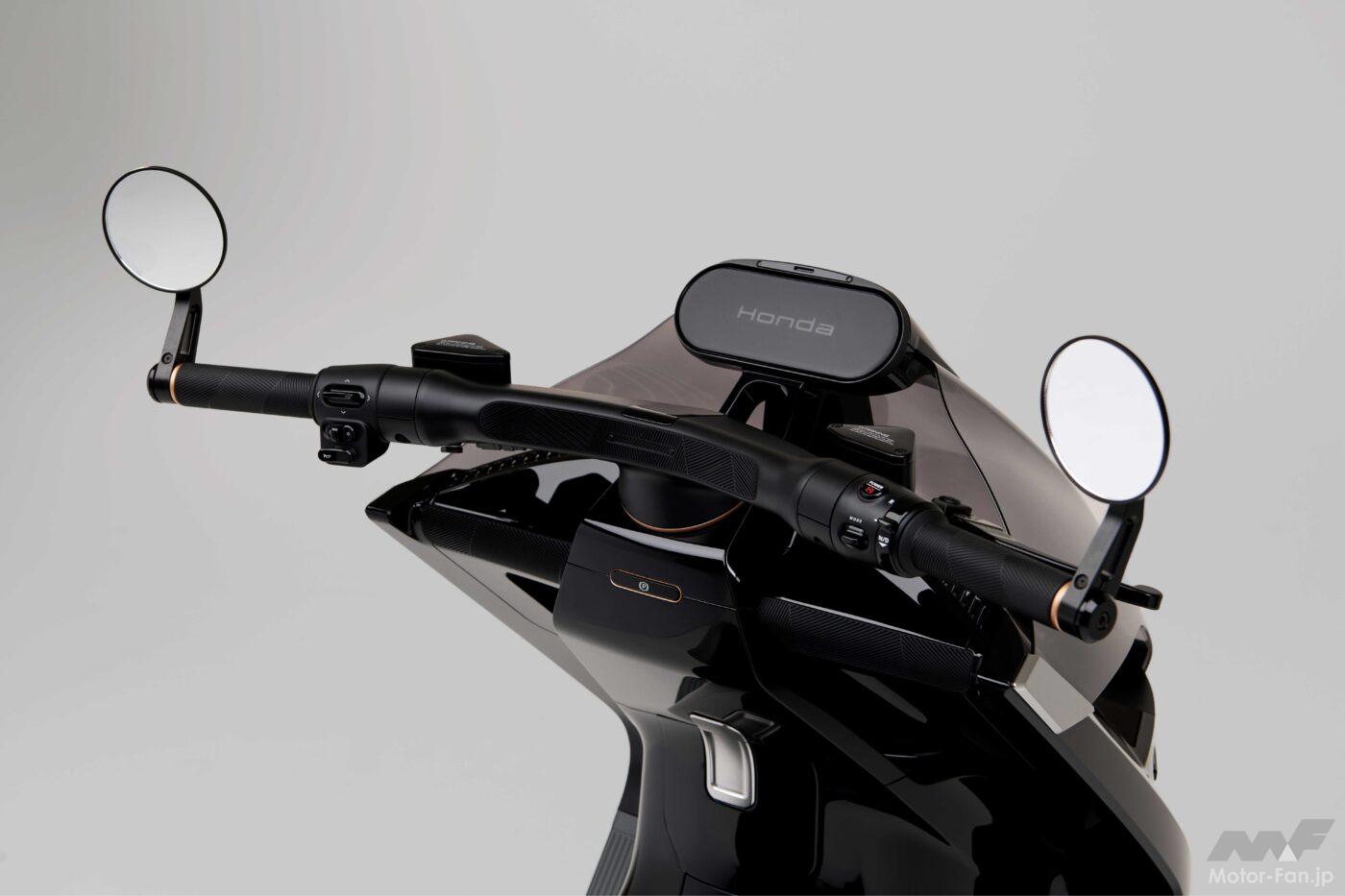 Hondaが長年にわたって培った二輪車開発の技術をフィードバックして、高次元での「走る」「曲がる」「止まる」の性能に加え、電動車の特徴でもある静かで振動のない新しい乗り心地、固定式バッテリーの採用によりスリムで扱いやすい車体パッケージでガソリン車とは異なる新感覚な体験を実現して、新たなモーターサイクルライフをサポート。四輪車と同じ規格の急速充電器CCS2に対応し、軽さとのバランスを最適化。急速充電に対応していることで、街中での使い勝手に十分な航続距離100km以上を想定している。