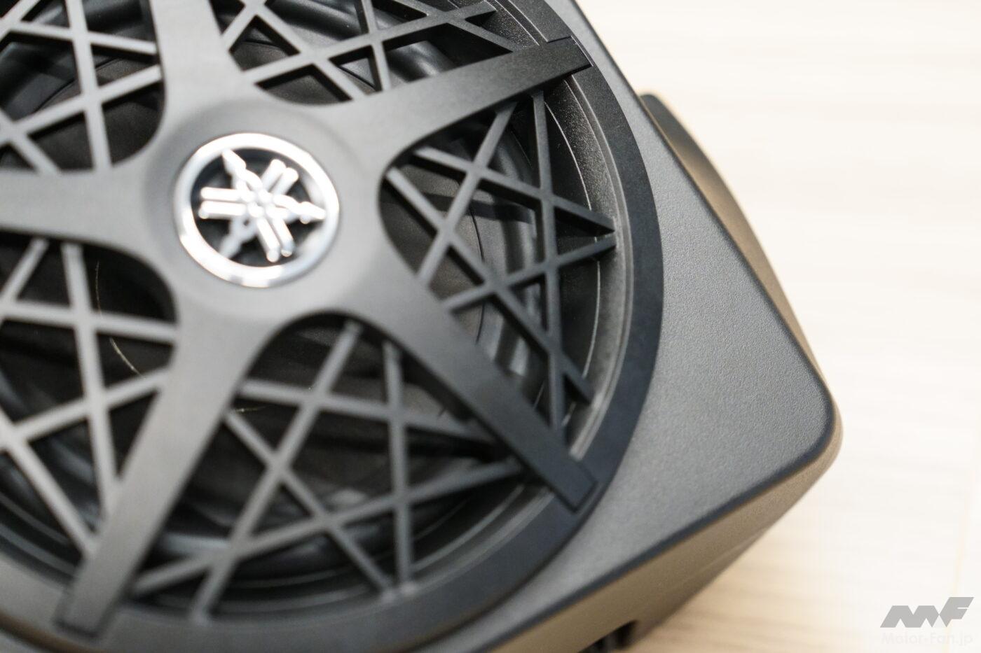 スピーカー下部のあまり見えないところにもYAMAHAの「Y」をモチーフにしたデザインが。ディティールまでこだわり、機能美を追求している。