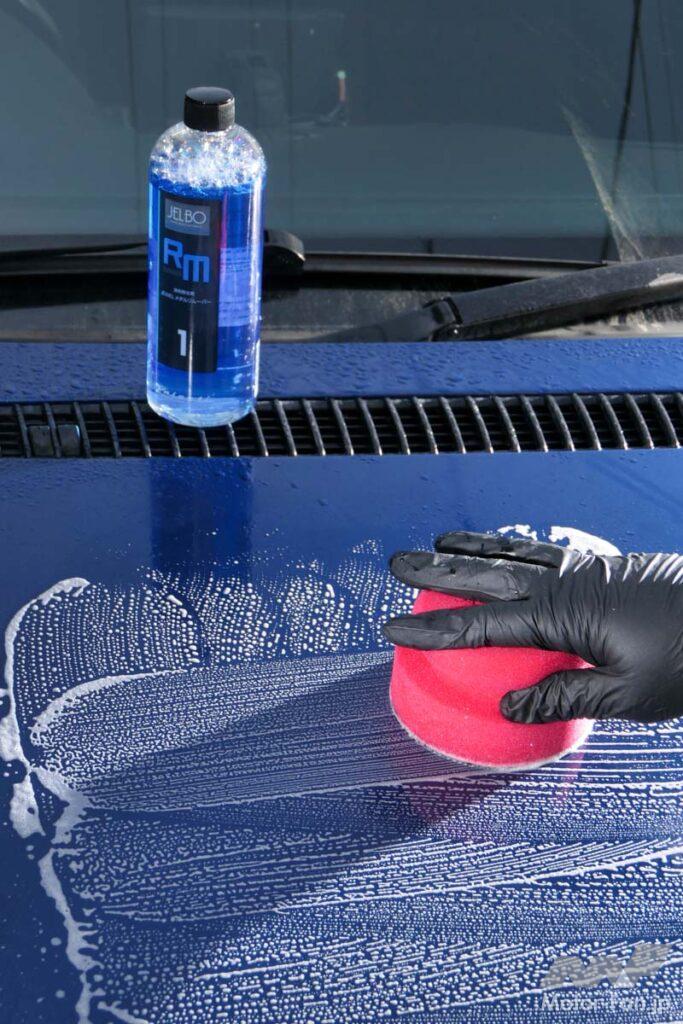 水だけで施工してもいいが、JELBOジュエルメタルリムーバー『JELBO-RM-1』と併用することでより効果が高まる。
