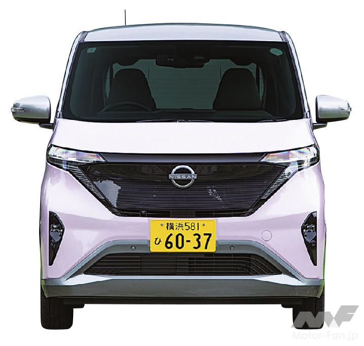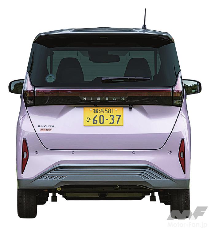 2022年に日産の軽自動車初のBEV(電気自動車)として発売されたサクラ。トールワゴンのデイズをベースにアリアと同様のタイムレス・ジャパニーズ・フューチャリズムという和テイストのデザインを採り入れている。BEVを象徴するため、光るVモーショングリルとエンブレムを採用。エンジンがないため塞がれたグリルは、シームレスで薄いヘッドランプとともに先進的な印象となっている。