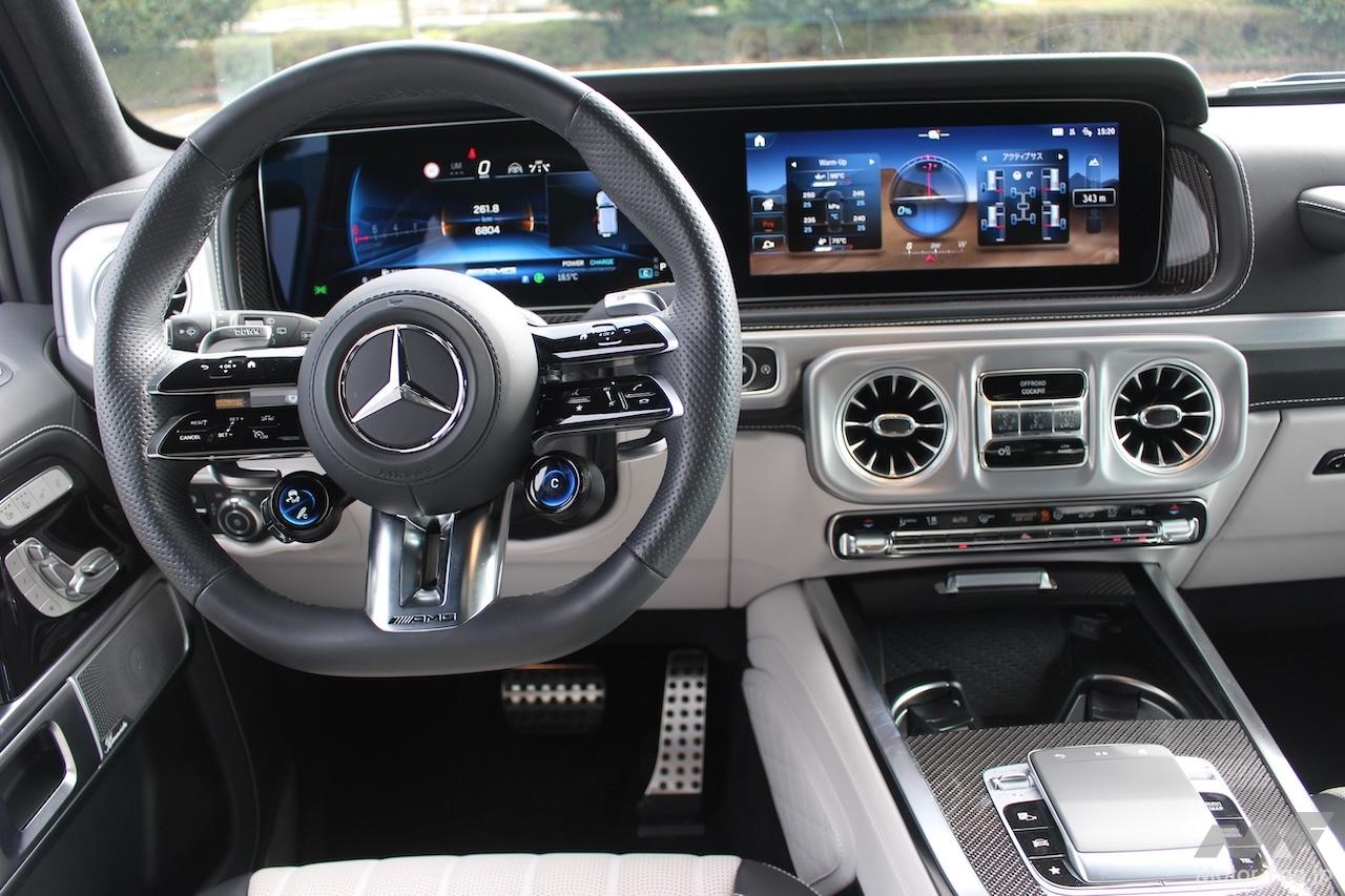 こう書くとAMGらしいスポーツキャラ全開のように思えるが、マイナーチェンジで静粛性や乗り心地自体はさらに洗練された。ハンドリングもトラック的な動きが影を潜め、普通に街中を走らせる分には十分に静かだ。240mmもの最低地上高によりよじ登り、降りる際も足元には注意する必要はあるが、こうした乗降性もGクラスに乗る儀式のように思えるし、半端な力では半ドアになる堅牢な立て付けのドアやボディ剛性感の塊のような室内空間の下界との隔絶感も相変わらずの美点だ。