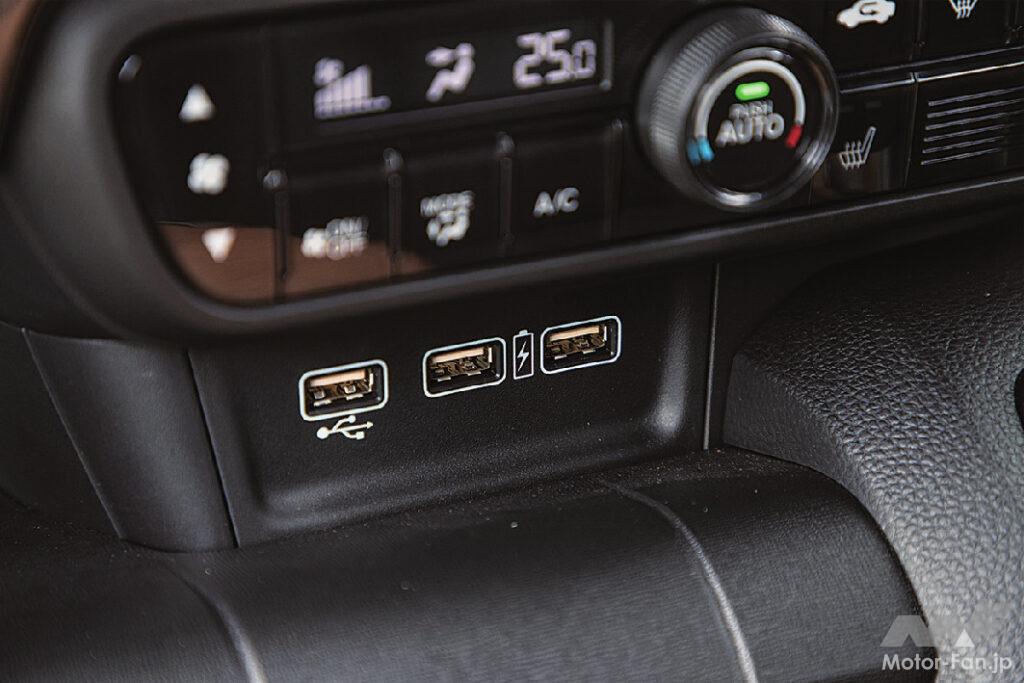 ラゲッジルームは18ℓポリタンクを腕を曲げずに載せられる高さに設定。フロアボードで上下に仕切ると、下段は500㎖ペットボトルの箱がふたつ積める。ボードは背もたれを前倒しした後席とほぼ同じ高さになり、大きな荷物も積みやすい。ライバルをリードするポイントは、クルマの仕立てがプレミアムカー並みであること。ボディの組み立てには構造用接着剤も使い、ドア開口部は打点の途切れないシーム溶接を採用して剛性を向上。フロントサスには小型車並みの大径ロッドを使用したストラットや、アルミ合金製のナックルを採用。ダンパーのフリクションコントロール技術には、アコード同等のものが使われている。