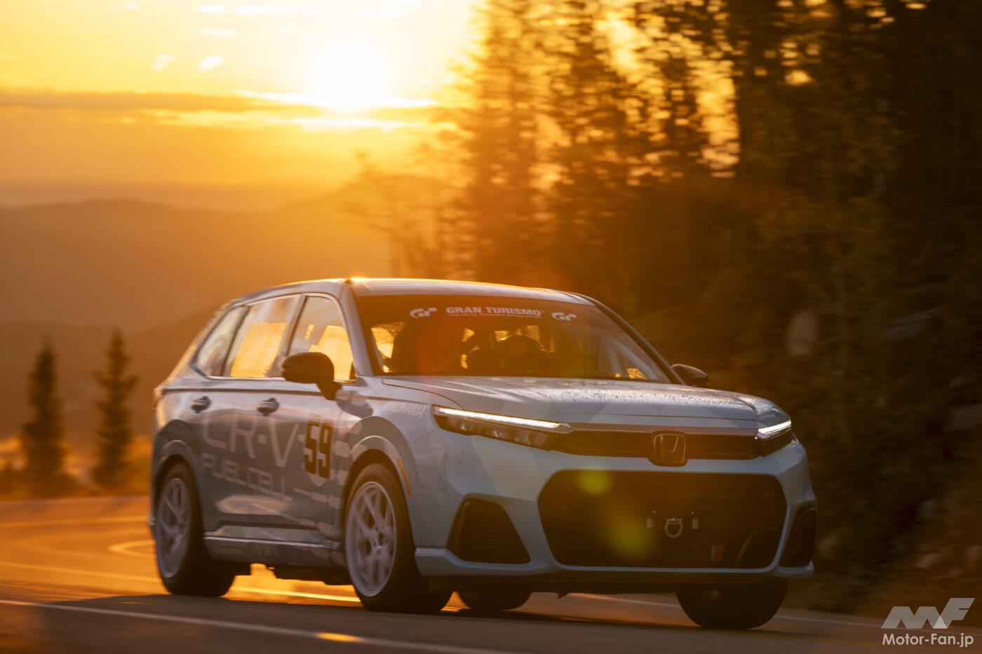 ホンダ・アメリカ・レース・チーム(HART)、ホンダR&Dジャパン、ホンダ・レーシング・コーポレーションUSA(HRC US)のエンジニアによって競技用にチューニングされたCR-V e:FCEVは、6月22日に開催される156コーナー、12.42マイルの山岳コースに挑む。2025年型量産モデルのCR-V e:FCEVは、ゼロエミッションパワートレインに一切の改造を加えずに“エキシビションクラス”に出場する。このパワートレインには、ミシガン州のFuel Cell System Manufacturing, LLC(FCSM)で製造された第2世代ホンダ燃料電池システム、フロントに搭載されたモーター、17.7kWhのバッテリーパック、および2つの高圧水素タンクが含まれる。