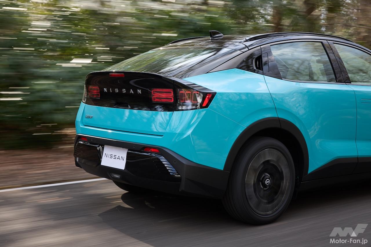 グロスブラック仕上げのテールゲート中央部には、「NISSAN」のブランド名が文字で表示され、ブランドとしての存在感を際立たせている。